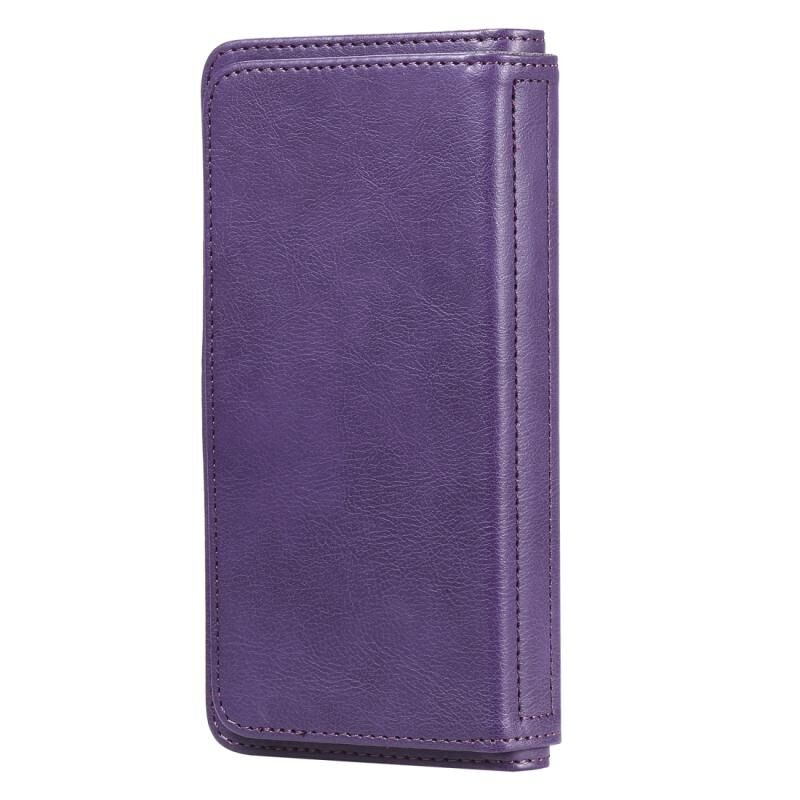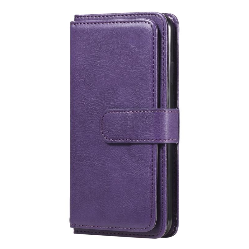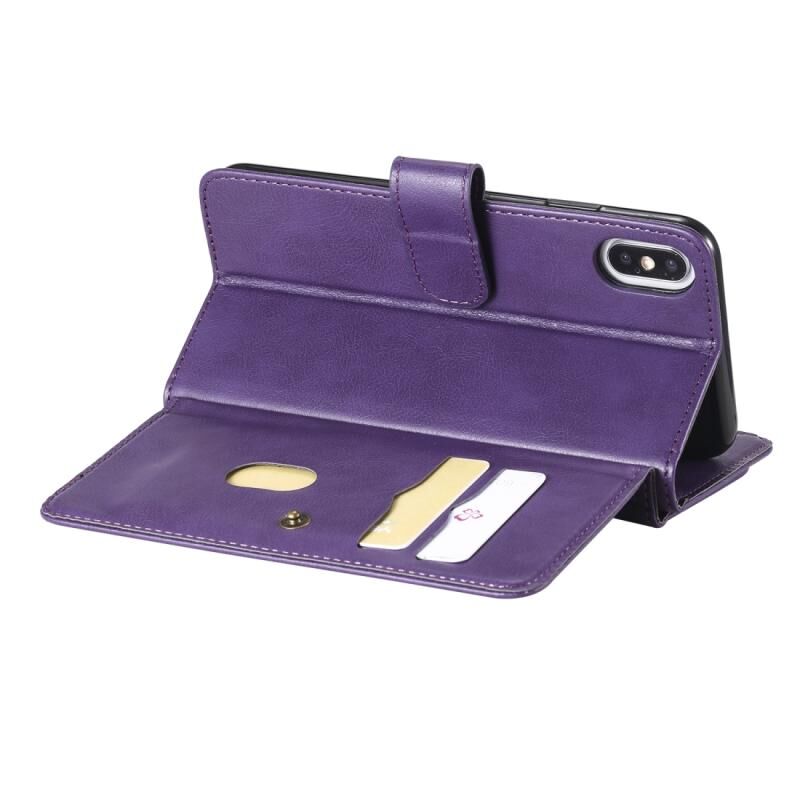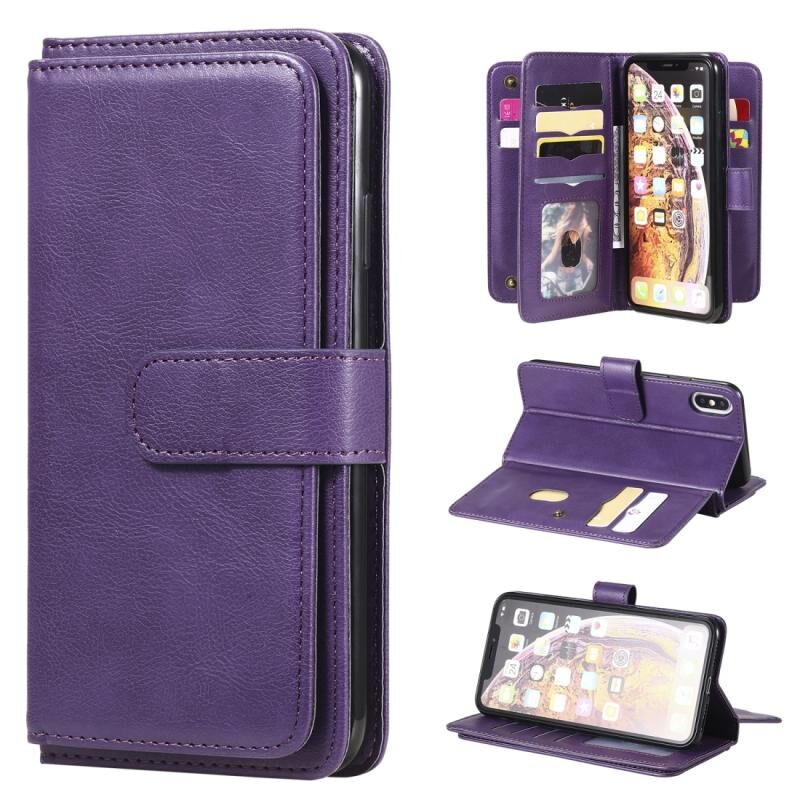 Θήκη για iPhone XS Max, πολυλειτουργική, μαγνητική, με αγκράφα από χαλκό, οριζόντια, μονόχρωμη, από δέρμα, με 10 υποδοχές για κάρτες & πορτοφόλι & βάση στήριξης & κορνίζα φωτογραφιών (Κρασί)