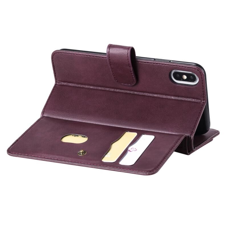 Θήκη για iPhone XS Max, πολυλειτουργική, μαγνητική, με αγκράφα από χαλκό, οριζόντια, μονόχρωμη, από δέρμα, με 10 υποδοχές για κάρτες & πορτοφόλι & βάση στήριξης & κορνίζα φωτογραφιών (Κρασί)