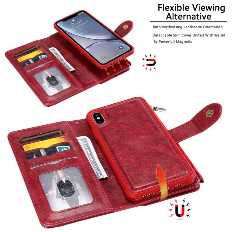 For iPhone XS Max Multifunctional Retro Detachable Magnetic Horizontal Flip Leather Case with Card Slots & Holder & Wallet & Photo Frame(Red)