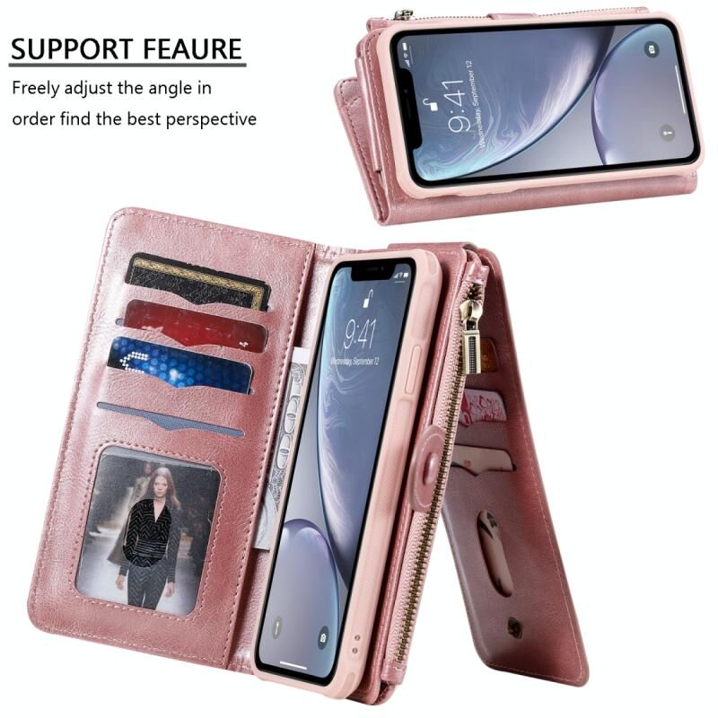 For iPhone XS Max Multifunctional Retro Detachable Magnetic Horizontal Flip Leather Case with Card Slots & Holder & Wallet & Photo Frame(Rose Gold)