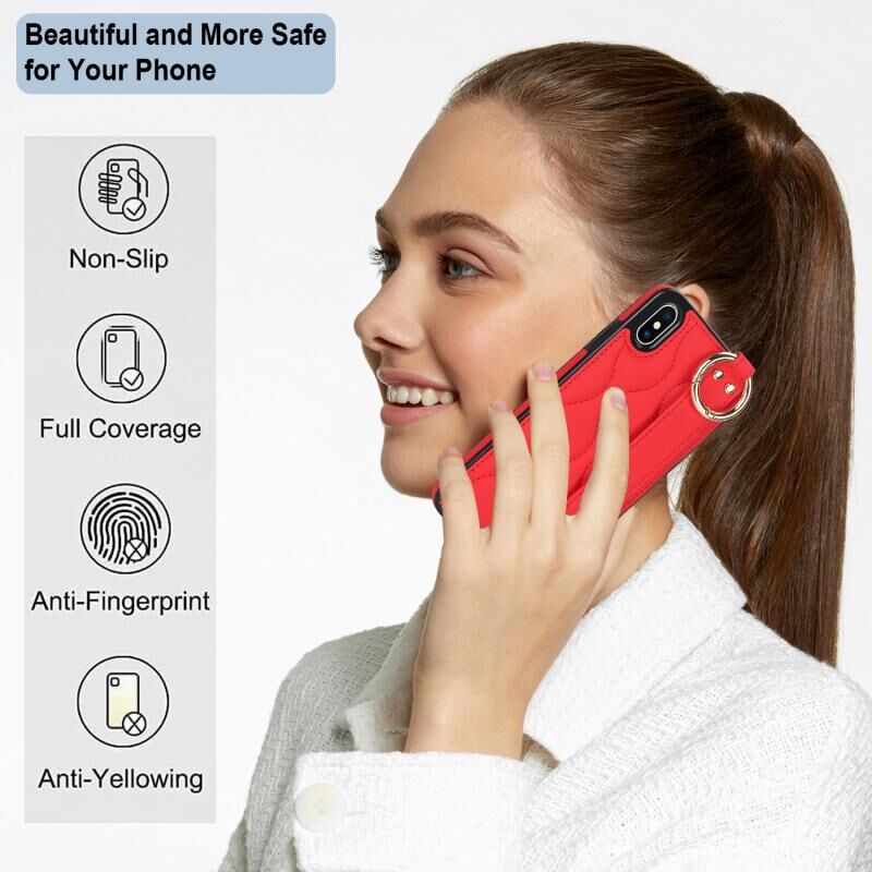 Θήκη τηλεφώνου για iPhone XS Max, αντιολισθητική, πλήρης κάλυψη, με δακτύλιο και λουρί καρπού (Μαύρο)