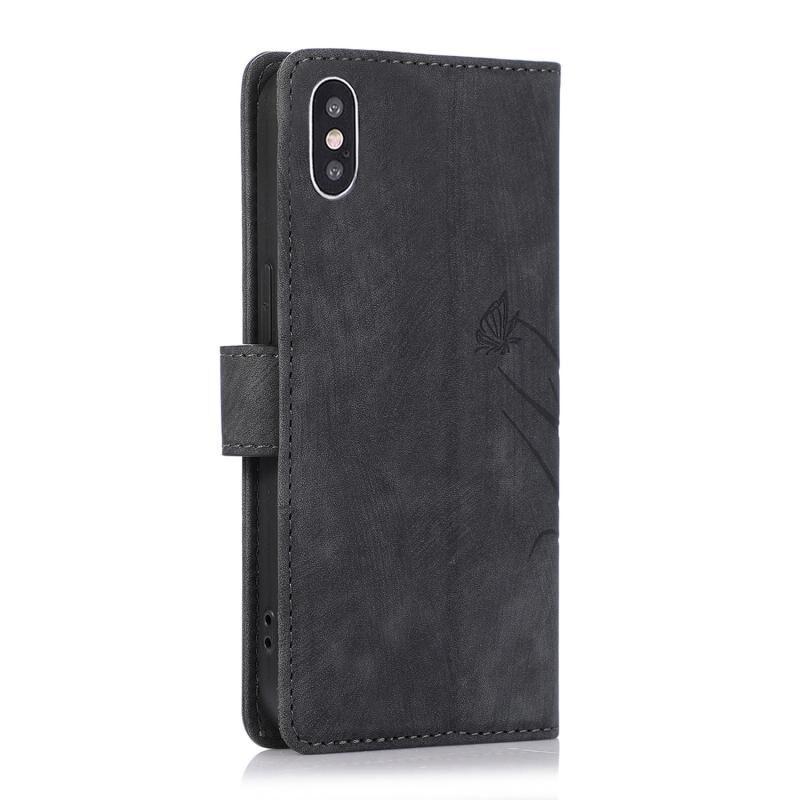Θήκη τηλεφώνου από δέρμα με ανάγλυφο σχέδιο ορχιδέας και πεταλούδας για iPhone XS Max (Μαύρο)