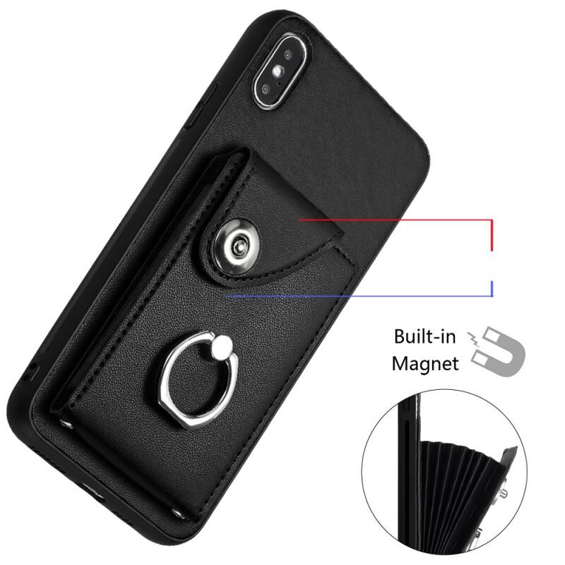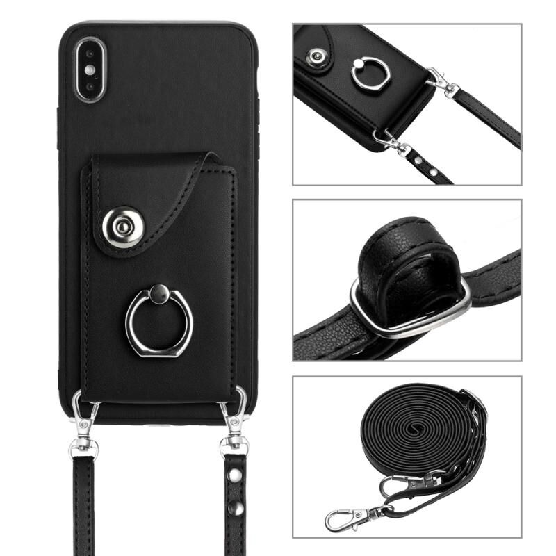 Θήκη τηλεφώνου για iPhone XS Max με κάρτα οργάνωσης, δακτύλιο συγκράτησης και μακρύ κορδόνι (Μαύρο)