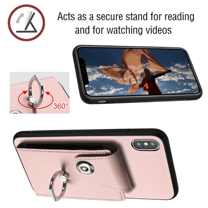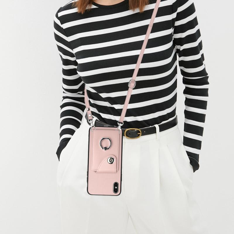 Θήκη τηλεφώνου για iPhone XS Max με κάρτα οργάνωσης, δακτύλιο συγκράτησης και μακρύ κορδόνι (ρόζ)