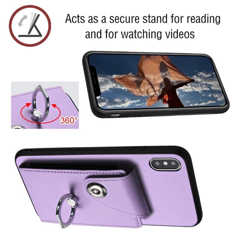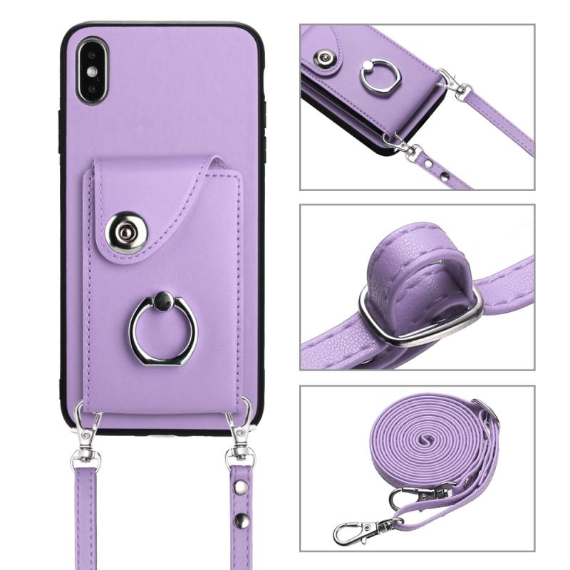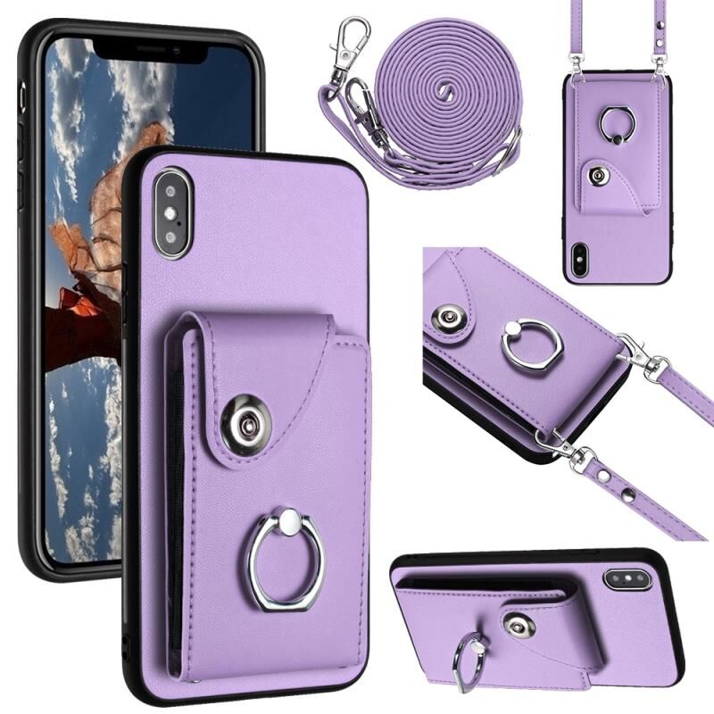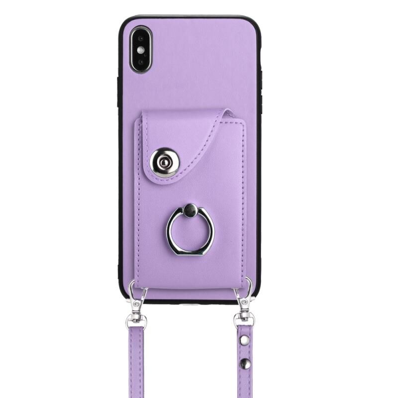 Θήκη τηλεφώνου για iPhone XS Max με κάρτα οργάνωσης, δακτύλιο συγκράτησης και μακρύ κορδόνι (Μωβ)