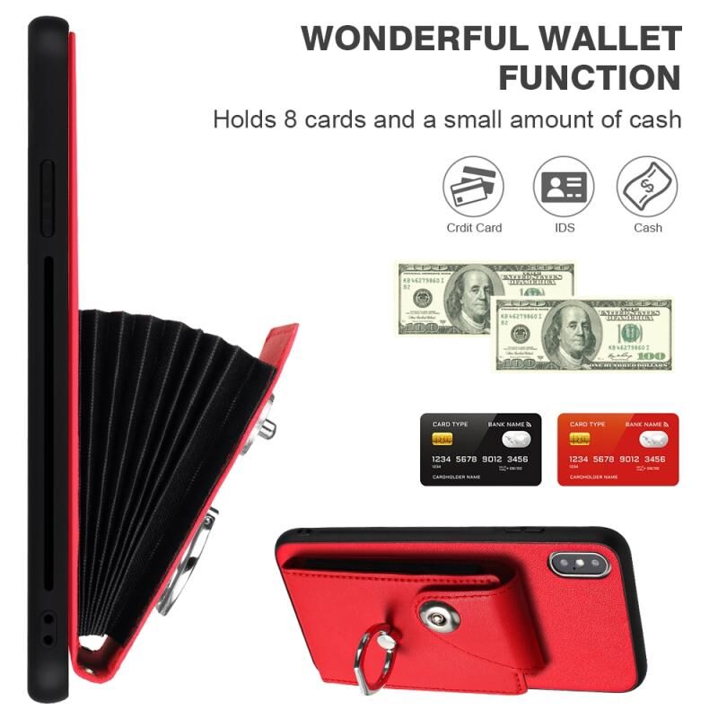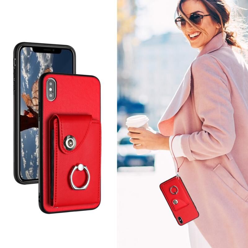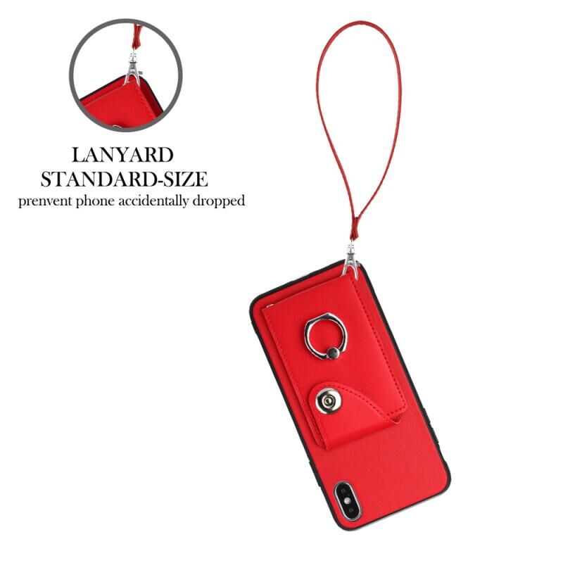 Θήκη κινητού τηλεφώνου για iPhone XS Max με κάρτα οργάνωσης, δακτύλιο συγκράτησης και λουρί από PU (Μωβ)