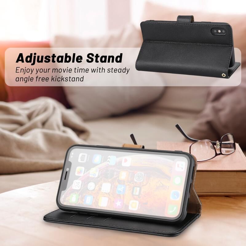 Θήκη τηλεφώνου για iPhone XS Max από δέρμα αγελάδας με απλή ύφανση (Μαύρο)