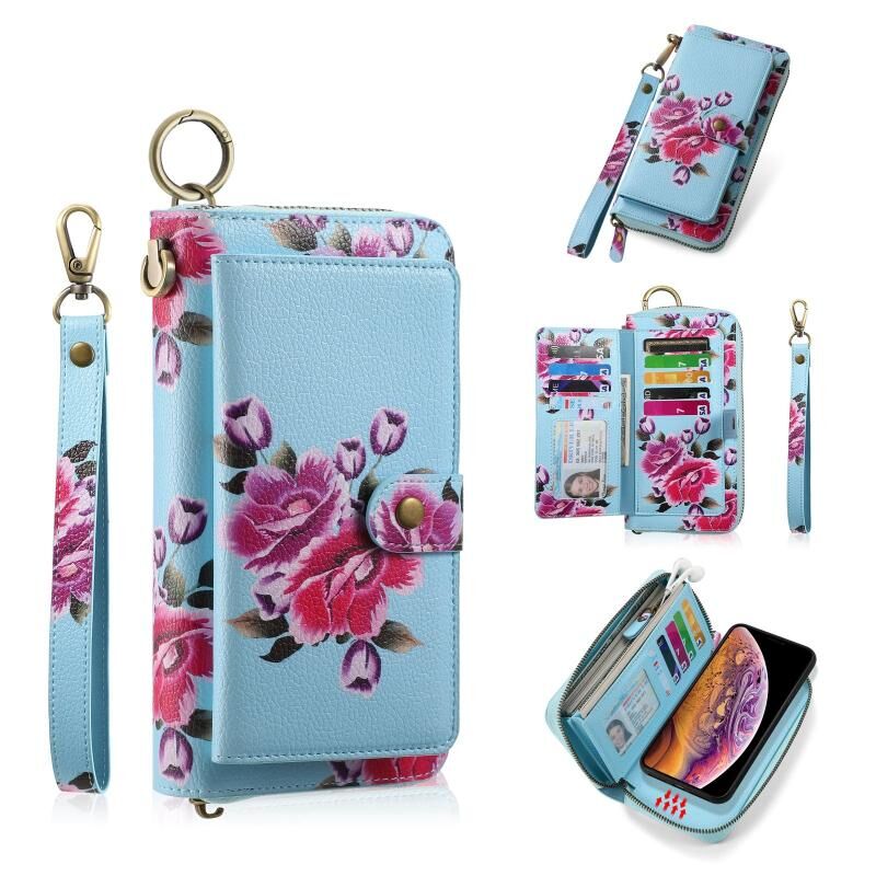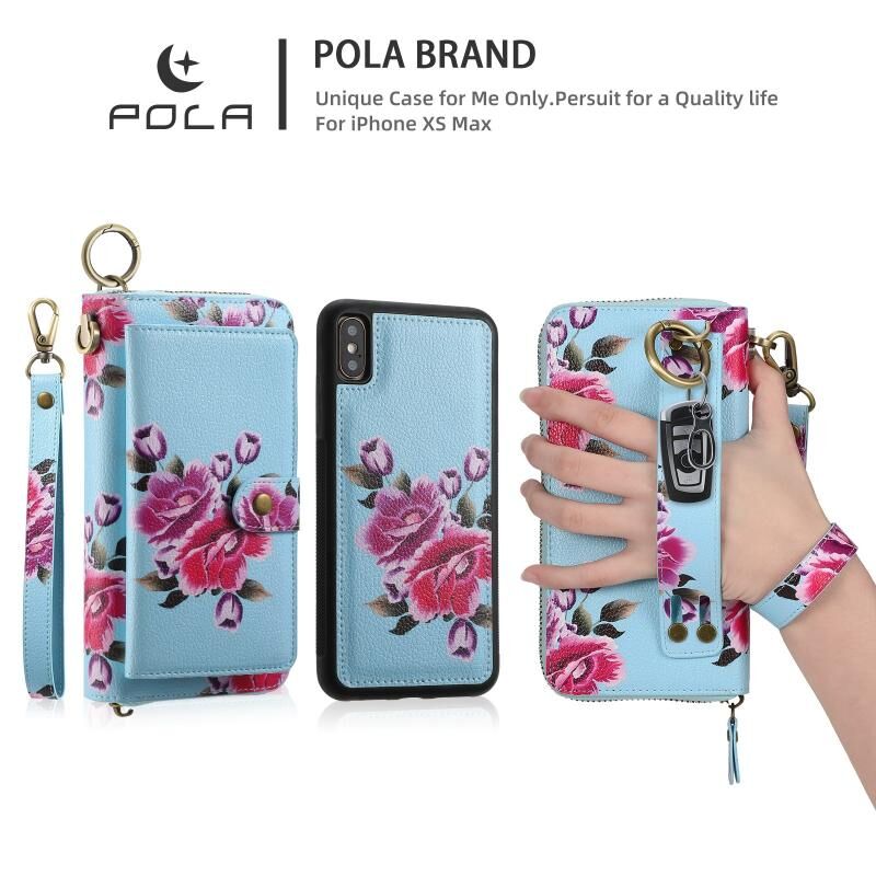 Θήκη τηλεφώνου από δέρμα με φερμουάρ, πολυλειτουργική, για iPhone XS Max POLA Flower (Μαύρο)