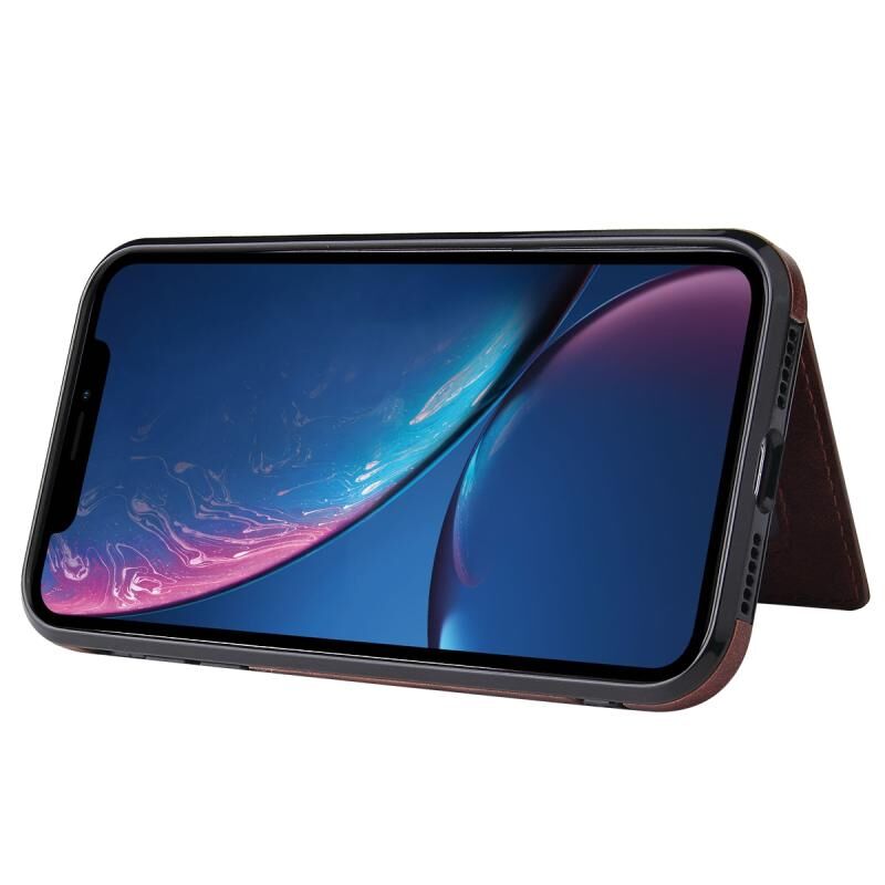 Θήκη πλάτης για iPhone XS Max από PU + TPU + PC ανθεκτική στις κρούσεις με υποδοχή κάρτας & βάση (Μαύρο)
