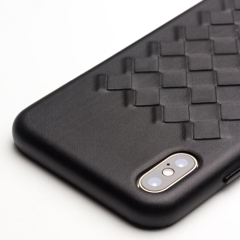 For iPhone XS Max QIALINO Shockproof Weave Cowhide Leather Protective Case(Black) (QIALINO)