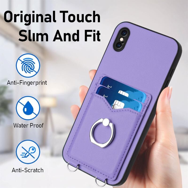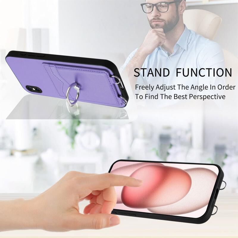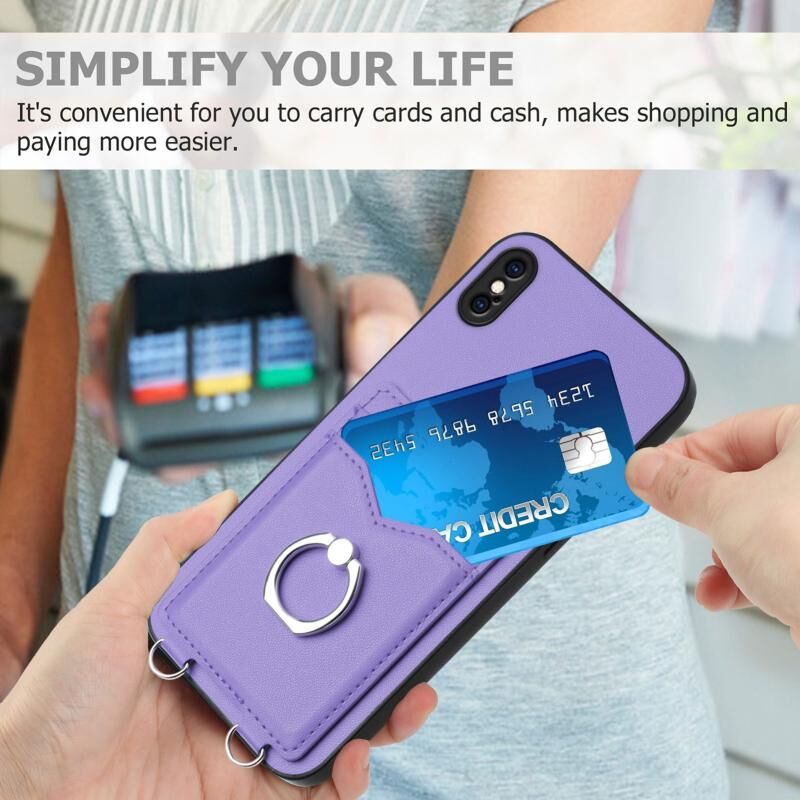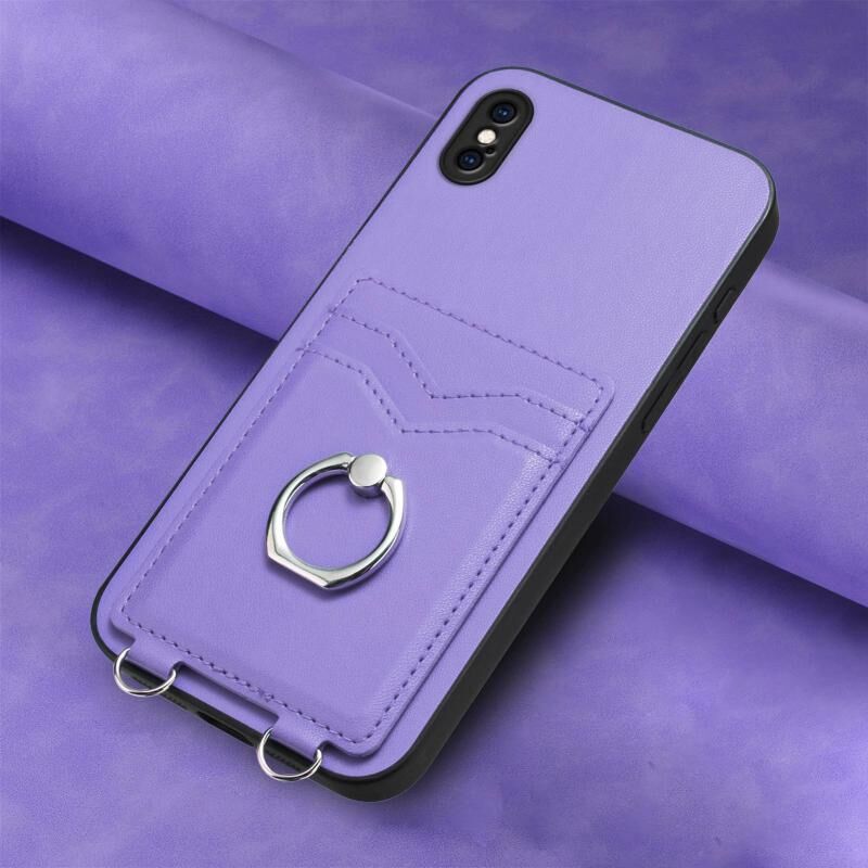 For iPhone XS Max R20 Ring Card Holder Phone Case(Purple)