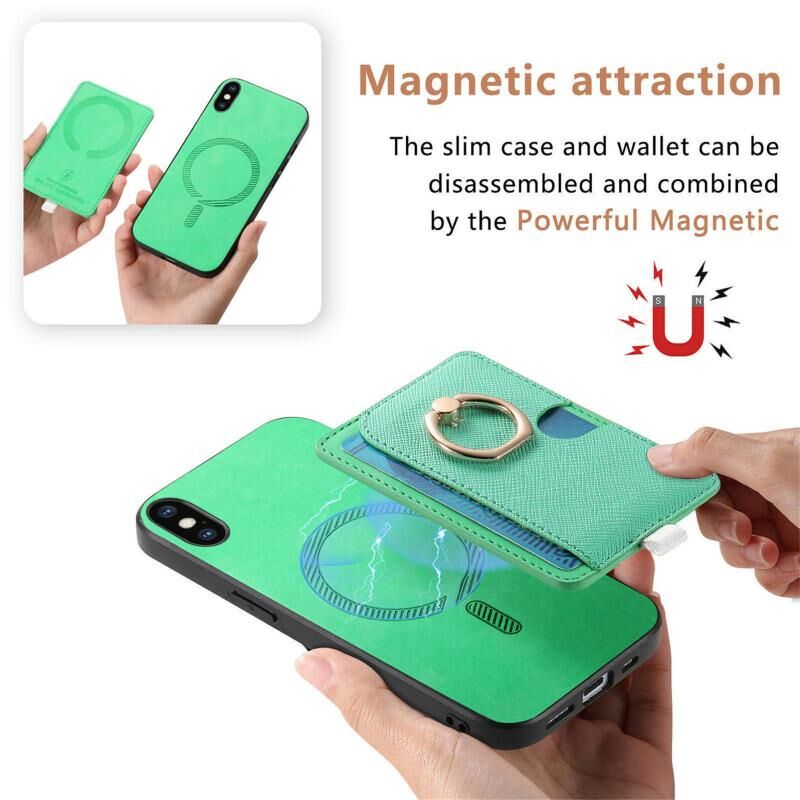 Θήκη τηλεφώνου MagSafe για iPhone XS Max, Ρετρό Δερμάτινη με Ενσωματωμένη Κάρτα και Δακτύλιο στο Πλαϊνό (πράσινο)