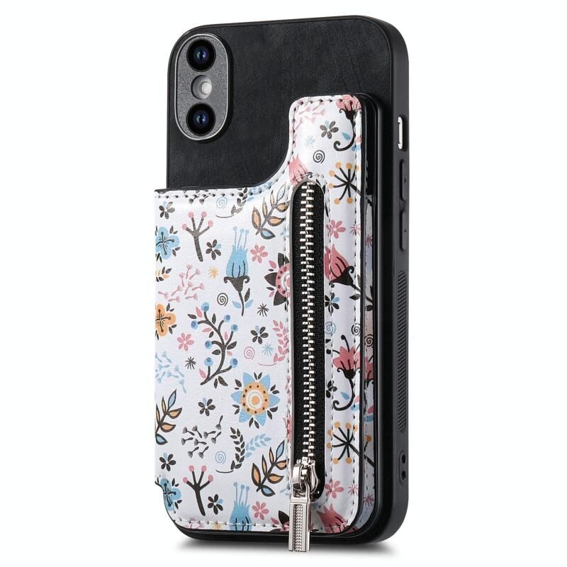 Θήκη κινητού τηλεφώνου για iPhone XS Max με σχέδιο vintage, φερμουάρ και θήκη πορτοφολιού (Ροζ)