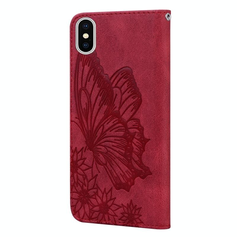 Θήκη δέρματος οριζόντιας αναδίπλωσης για iPhone XS Max με ανάγλυφα σχέδια πεταλούδων σε ρετρό υφή, με βάση & υποδοχές καρτών & πορτοφόλι (Κόκκινο)