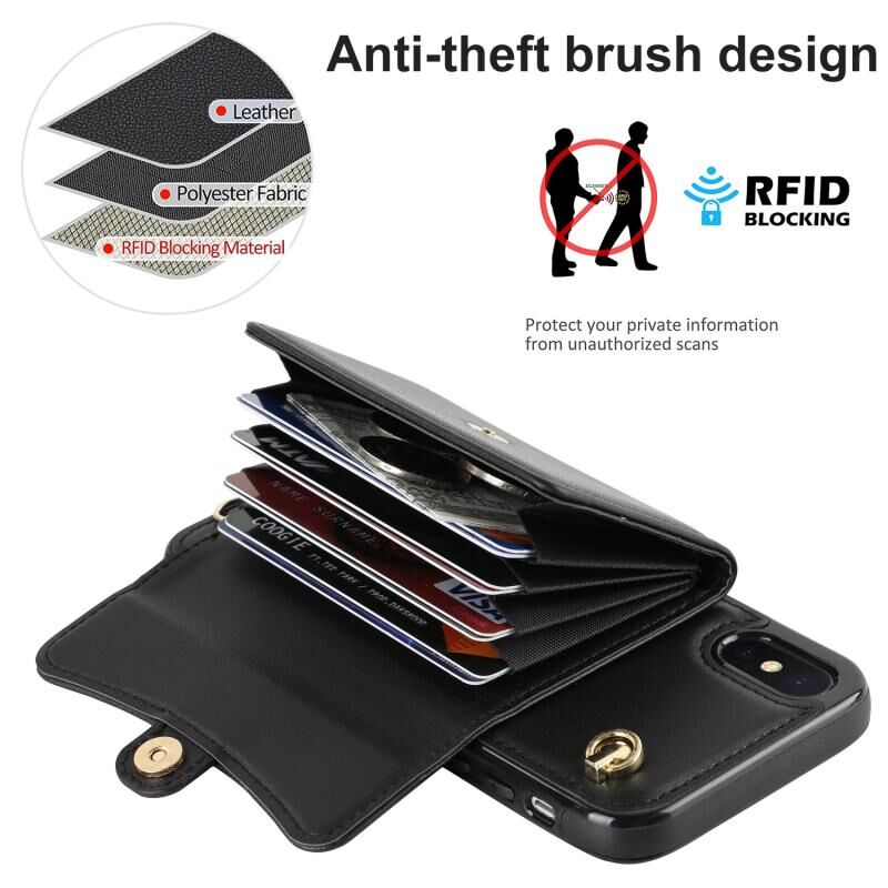 Θήκη τηλεφώνου για iPhone XS Max με υποδοχή κάρτας RFID και μακρύ λουρί (Μαύρο)