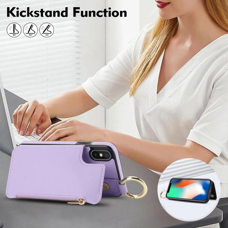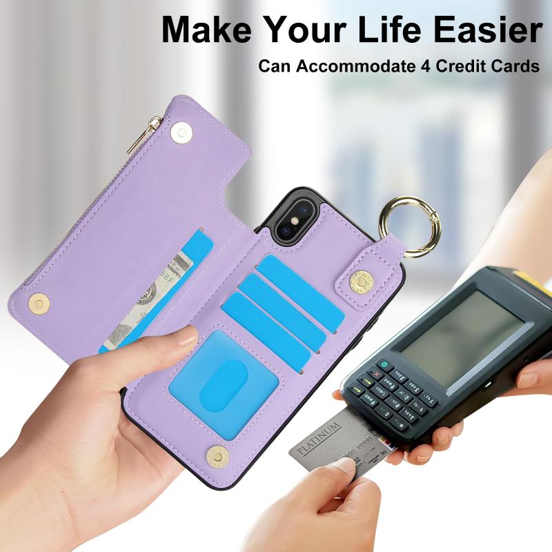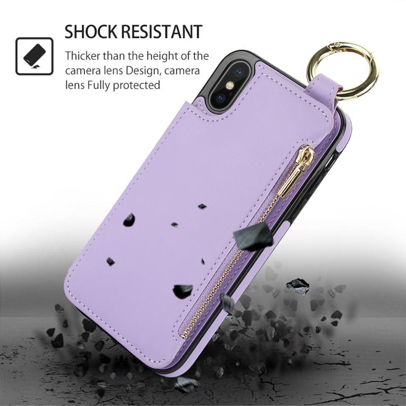 For iPhone XS Max RFlD Anti-theft Double Buckle Ring Zipper Card Phone Case(Purple)