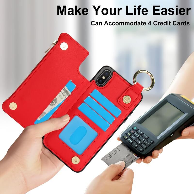 Θήκη τηλεφώνου για iPhone XS Max RFlD αντι-κλοπής με διπλή αγκράφα, δακτύλιο και φερμουάρ κάρτας (Λευκό)