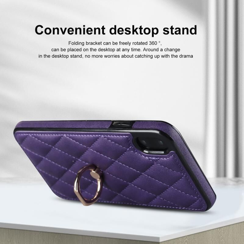 Θήκη τηλεφώνου για iPhone XS Max από δερματίνη με ρόμβους και δακτύλιο στήριξης (Μωβ)