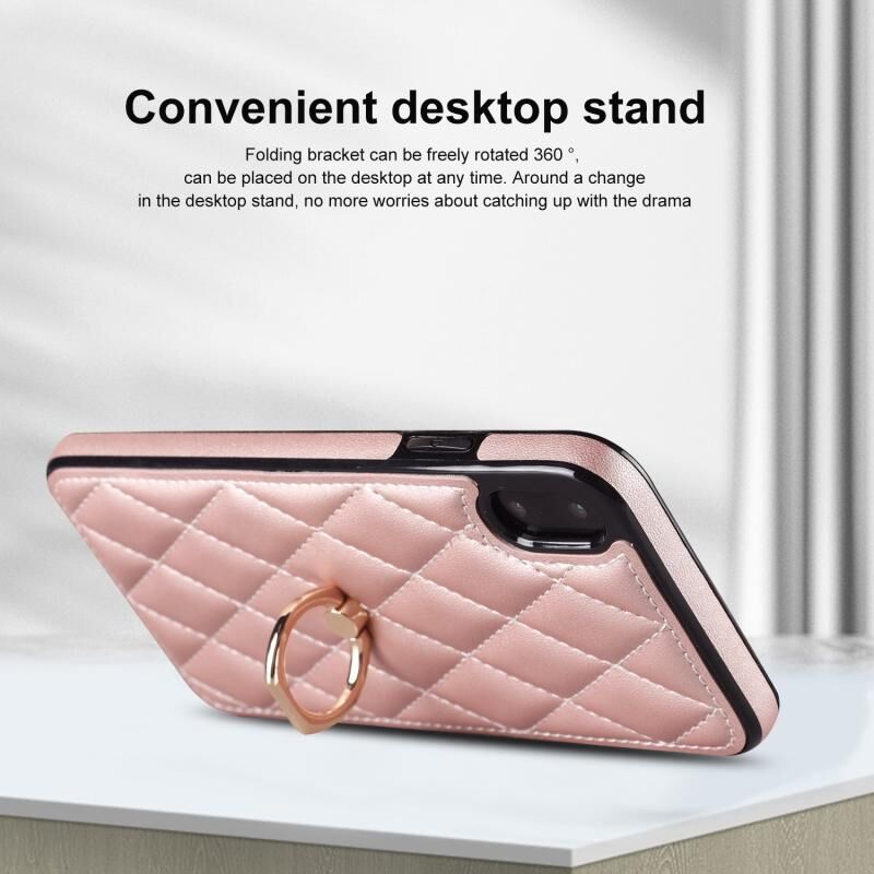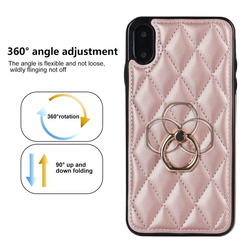 For iPhone XS Max Rhombic PU Leather Phone Case with Ring Holder(Rose Gold)