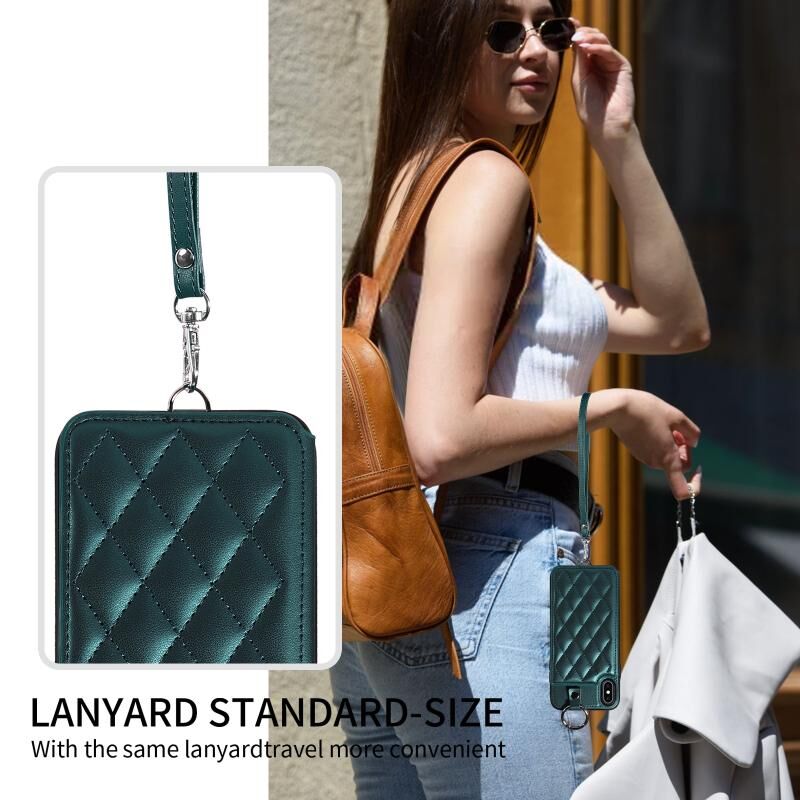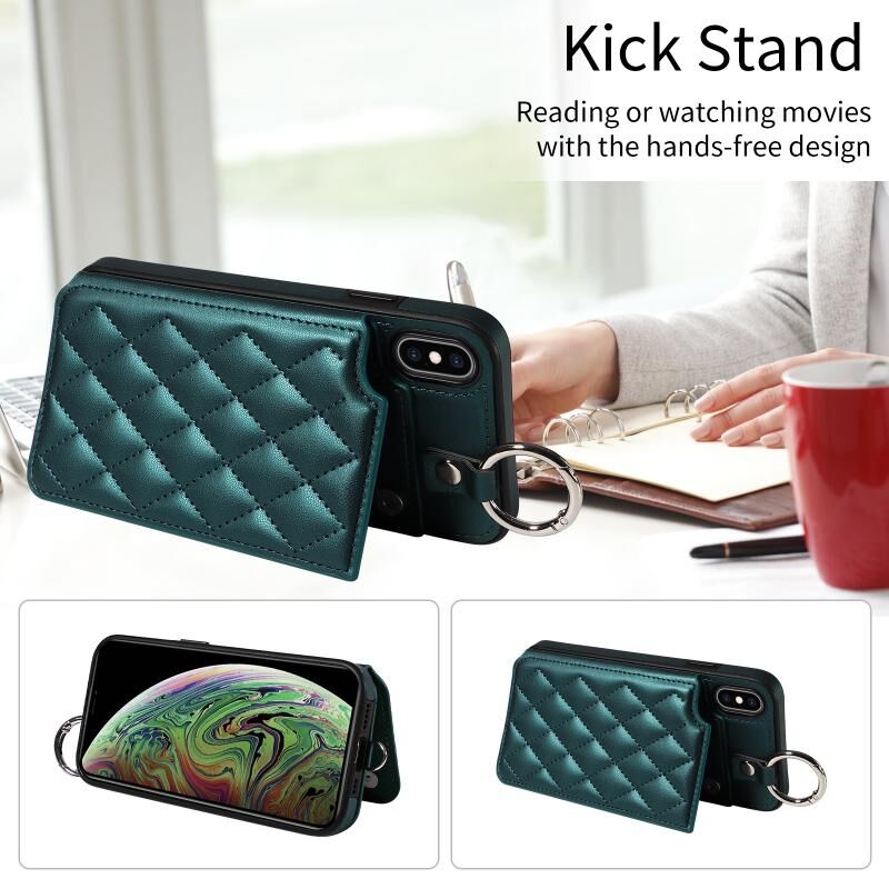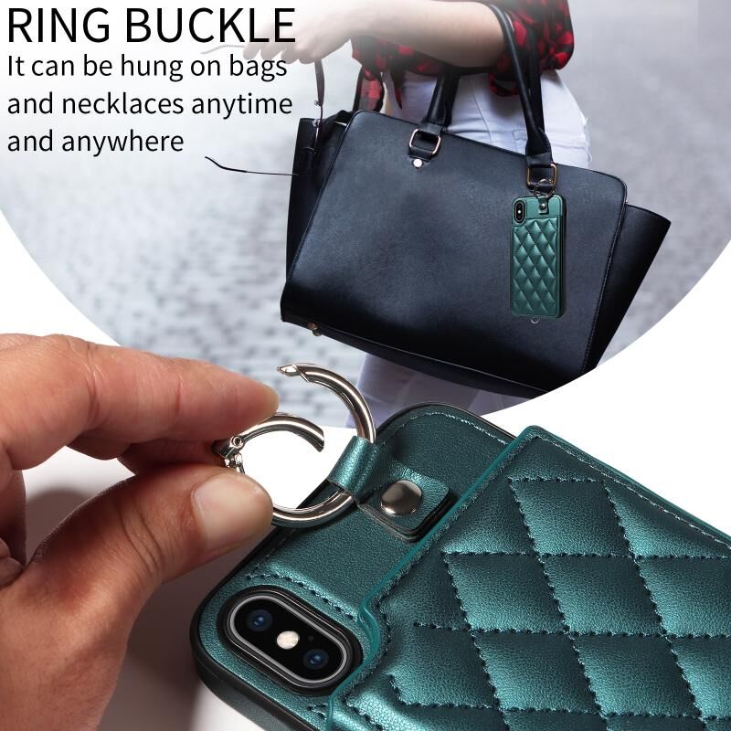 Θήκη τηλεφώνου για iPhone XS Max με υφή ρόμβου και κάρτες, με κοντό κορδόνι (Λευκό)