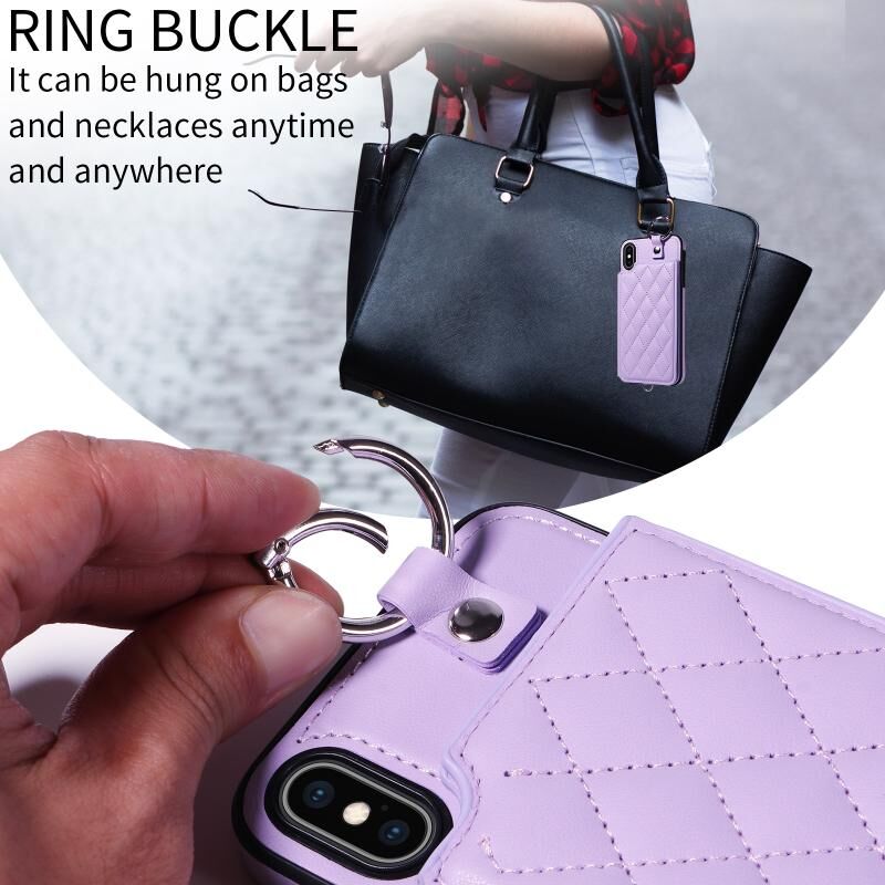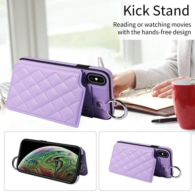 Θήκη τηλεφώνου για iPhone XS Max με υφή ρόμβου και κάρτες, με κοντό κορδόνι (Λευκό)
