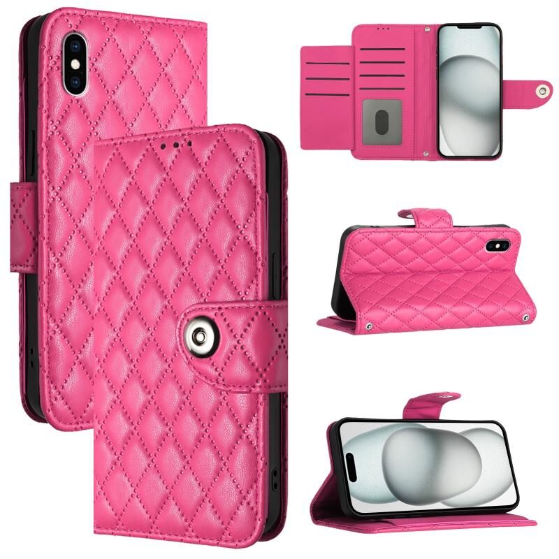 Θήκη τηλεφώνου από δέρμα με ανάγλυφη υφή ρόμβου για iPhone XS Max με κορδόνι (Κόκκινο)
