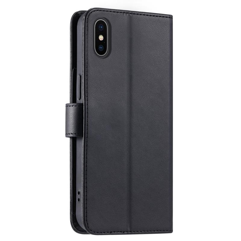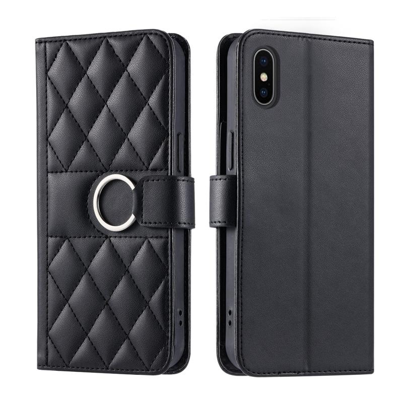 For iPhone XS Max Ring Buckle Rhombic Leather Phone Case(Black)