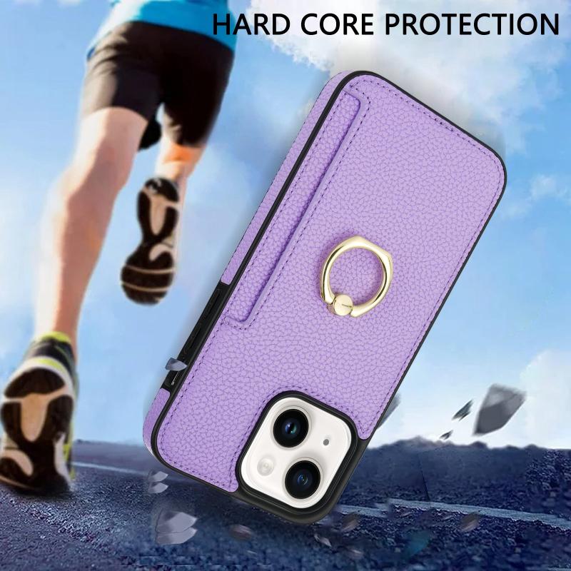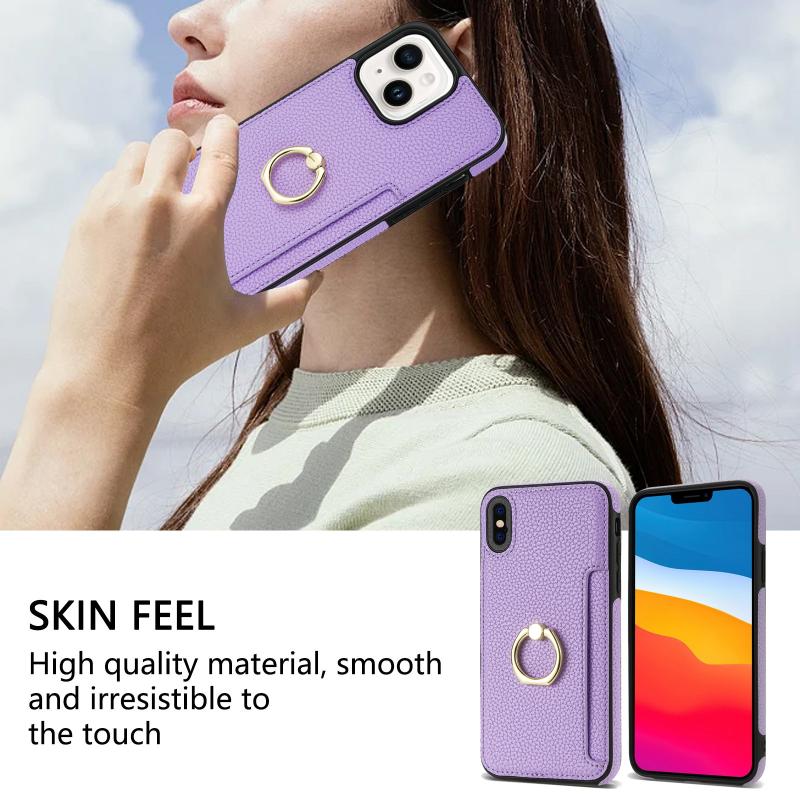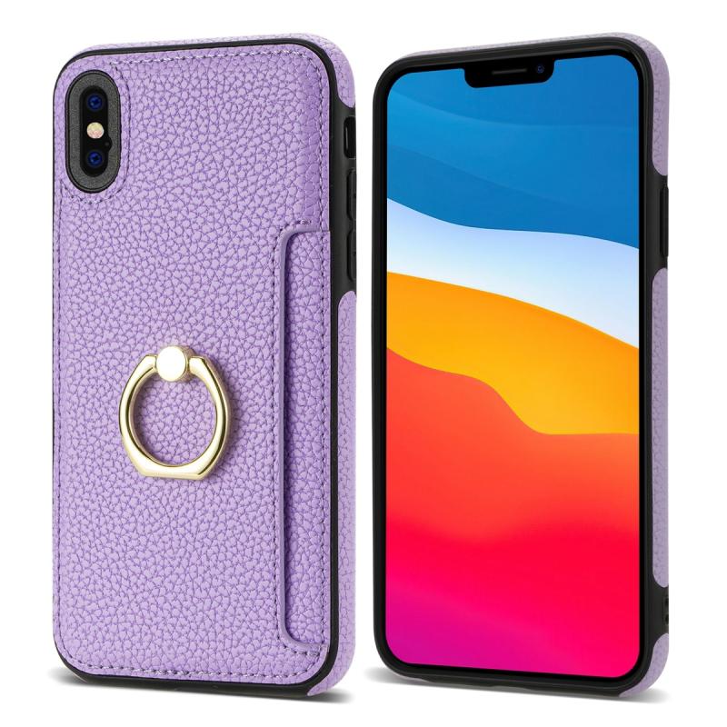 For iPhone XS Max Ring Card Litchi Leather Back Phone Case(Purple)