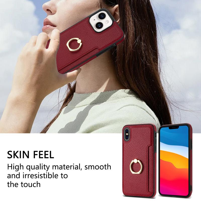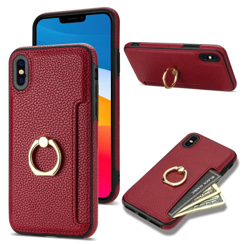 For iPhone XS Max Ring Card Litchi Leather Back Phone Case(Red)