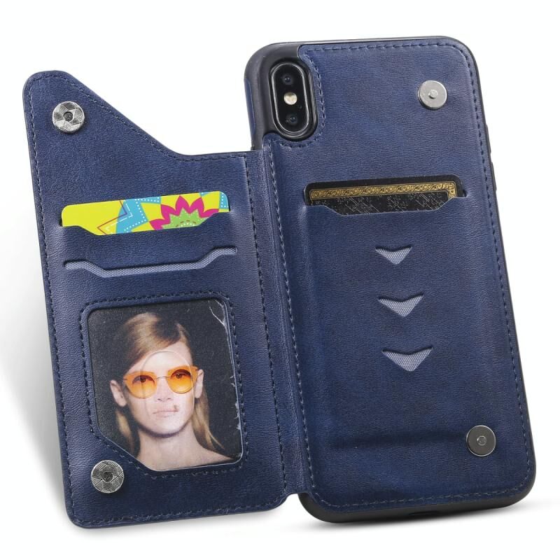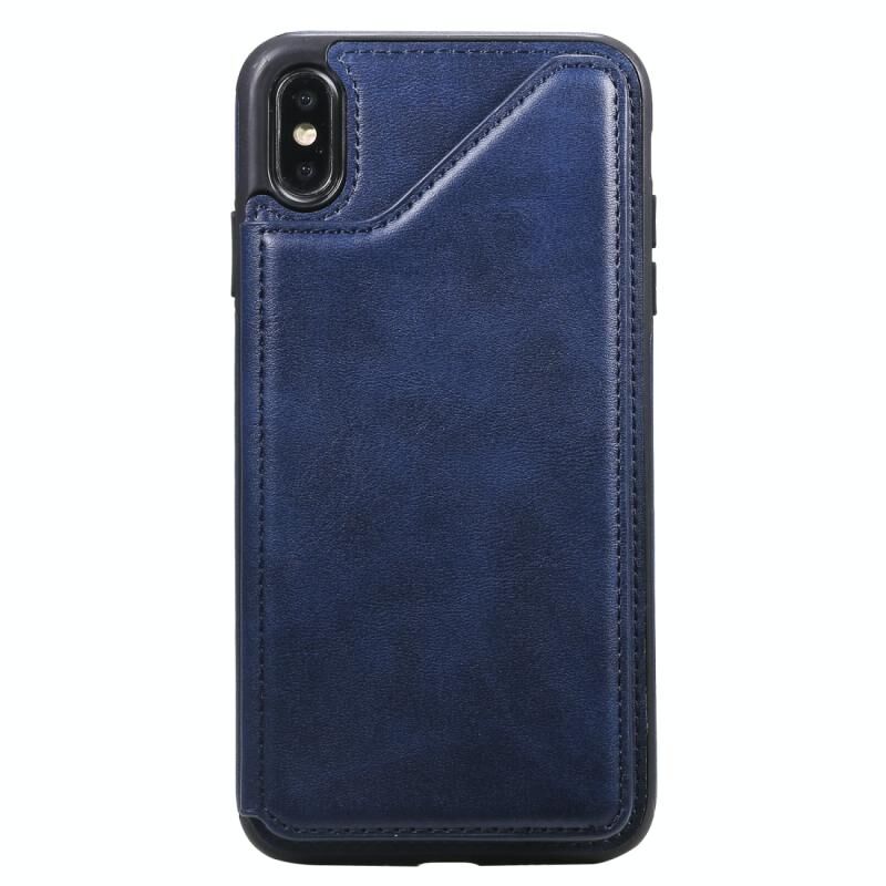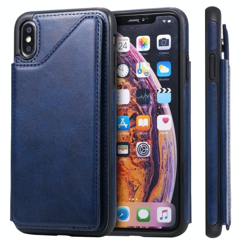 For iPhone XS Max Shockproof Calf Texture Protective Case with Holder & Card Slots & Frame(Blue)
