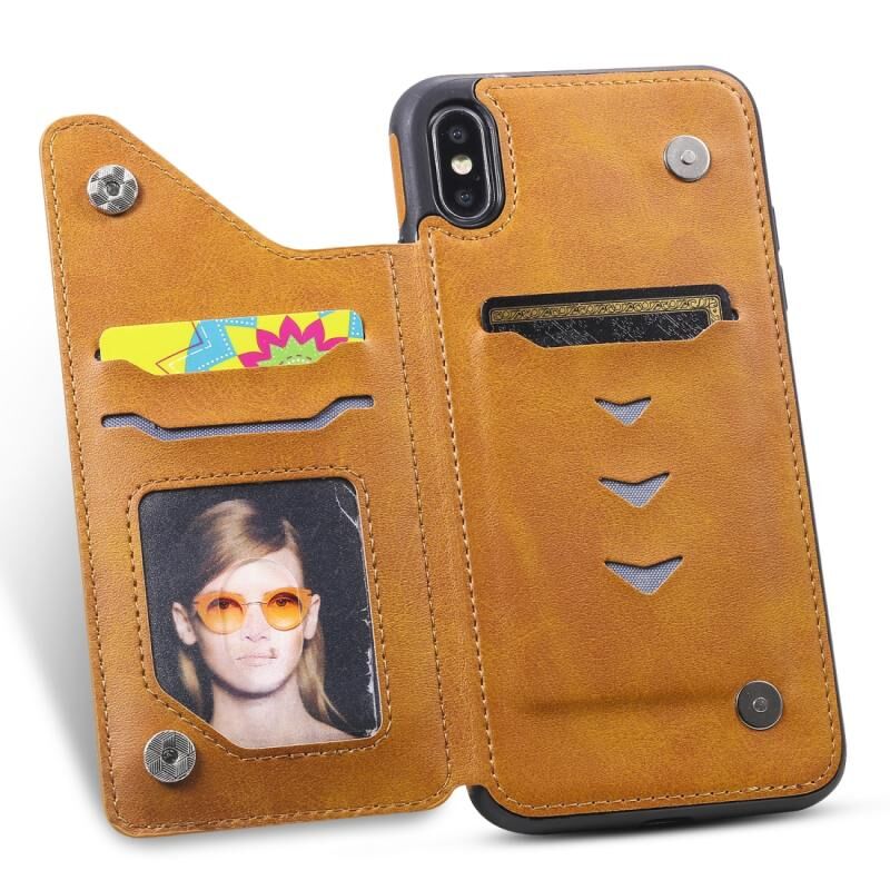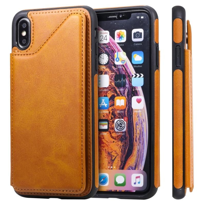 For iPhone XS Max Shockproof Calf Texture Protective Case with Holder & Card Slots & Frame(Brown)