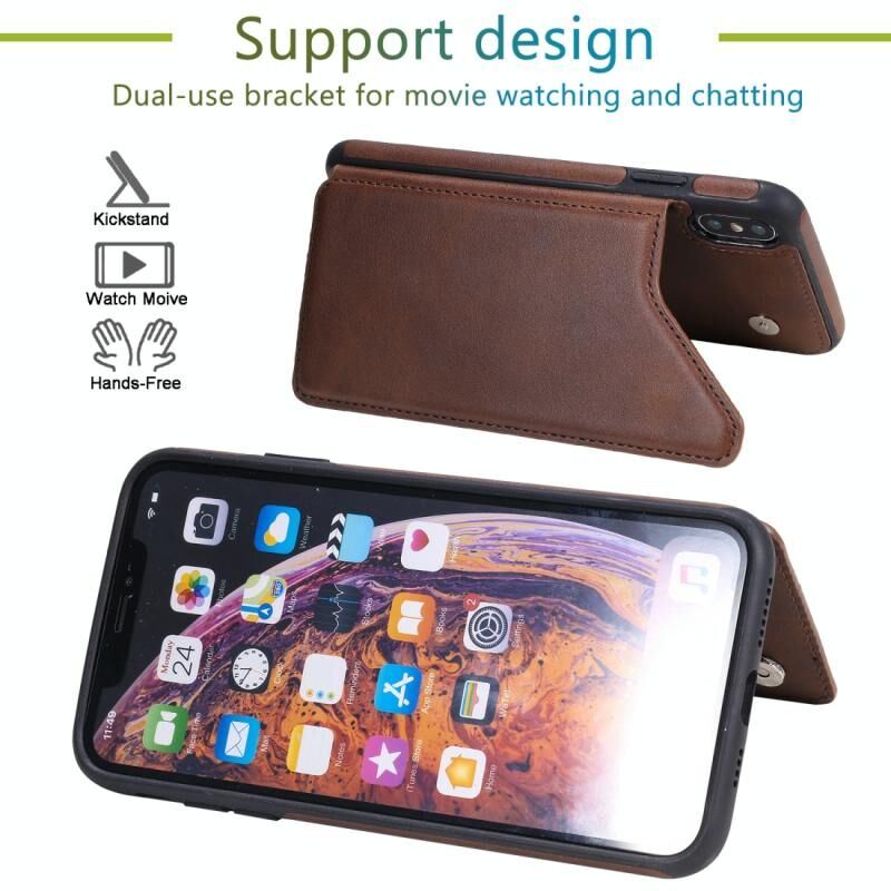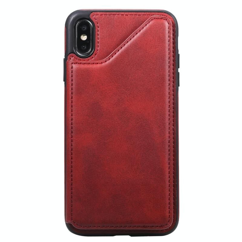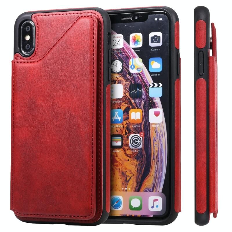For iPhone XS Max Shockproof Calf Texture Protective Case with Holder & Card Slots & Frame(Red)