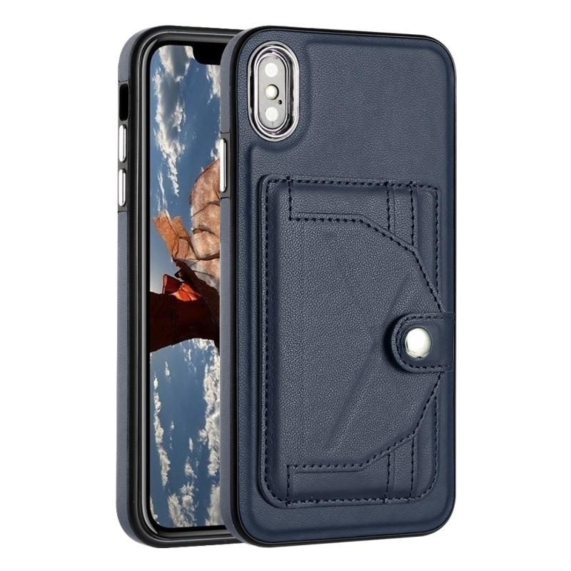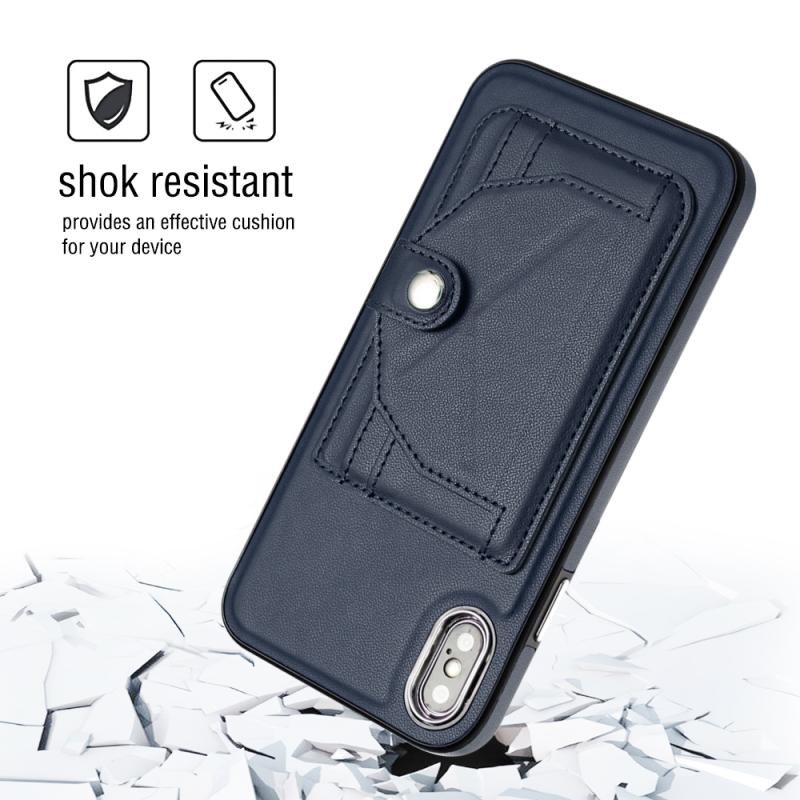 For iPhone XS Max Shockproof Leather Phone Case with Card Holder(Blue)