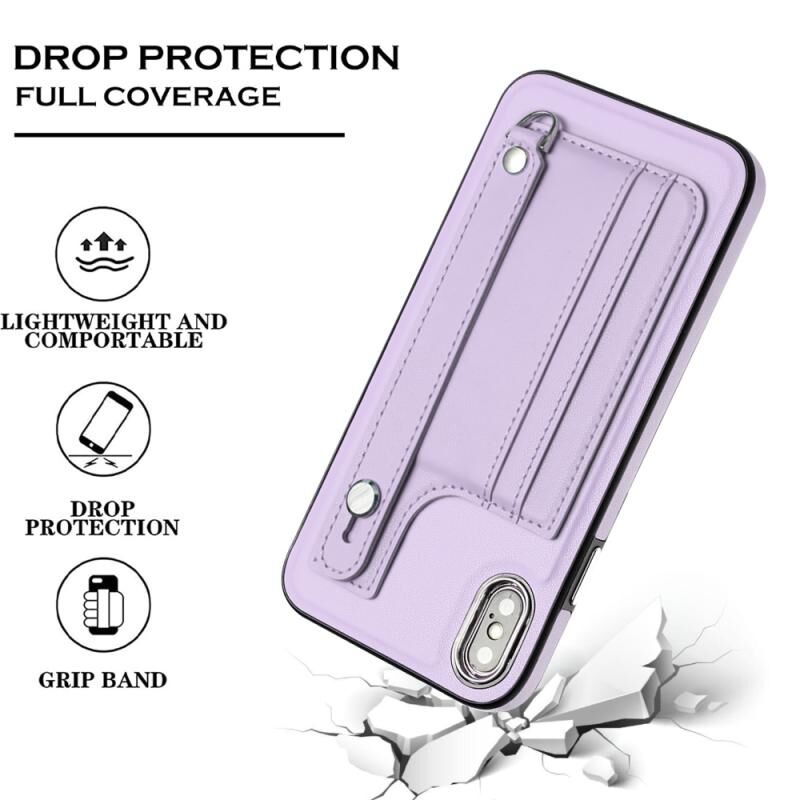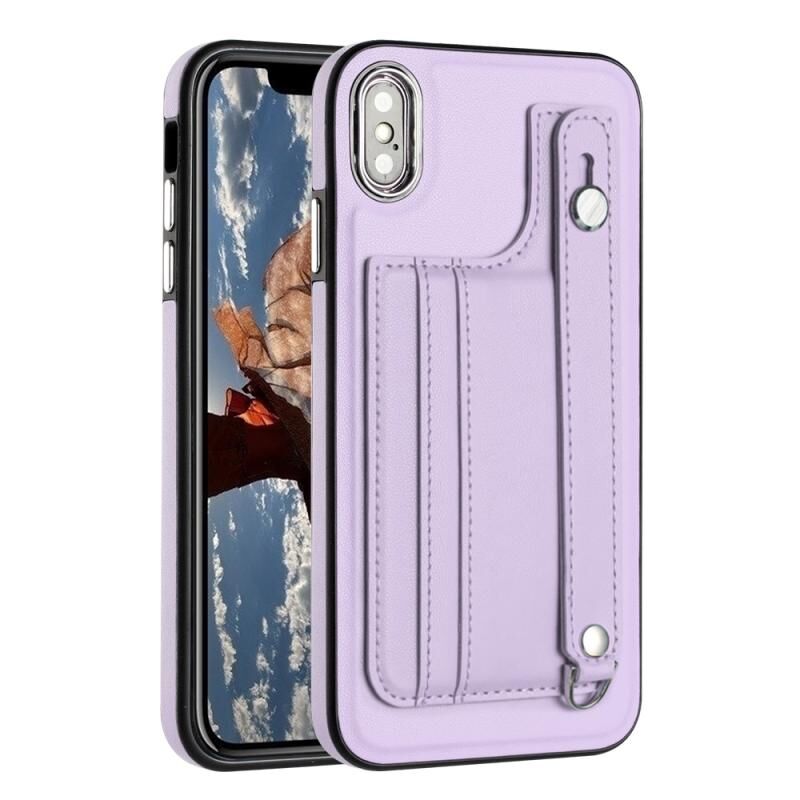 For iPhone XS Max Shockproof Leather Phone Case with Wrist Strap(Purple)