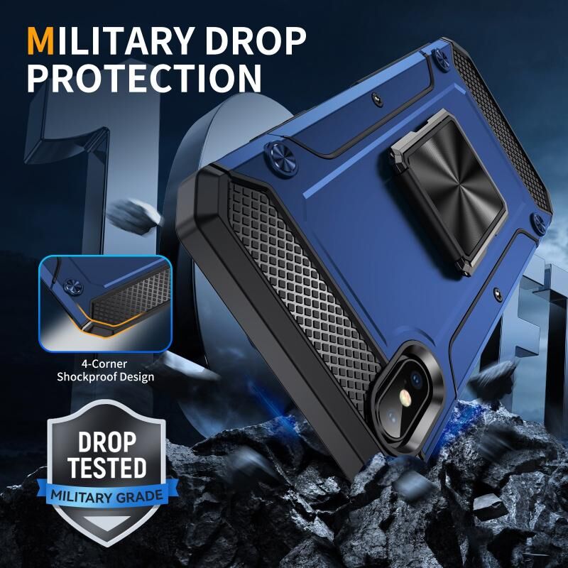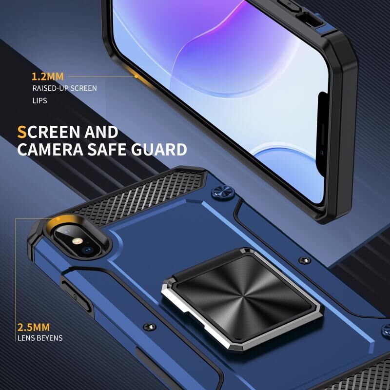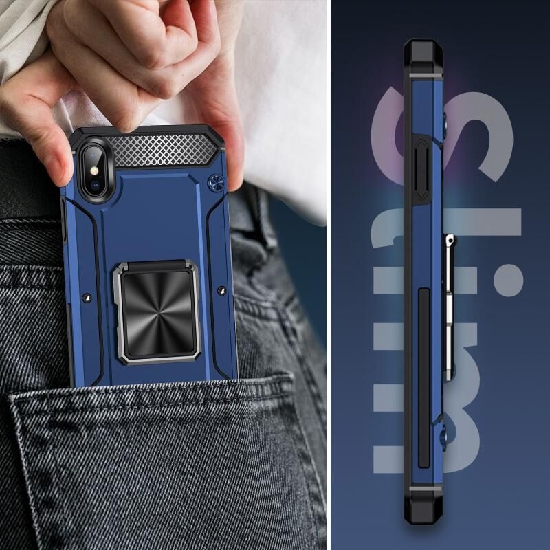 For iPhone XS Max Shockproof Metal Holder Phone Case(Blue)