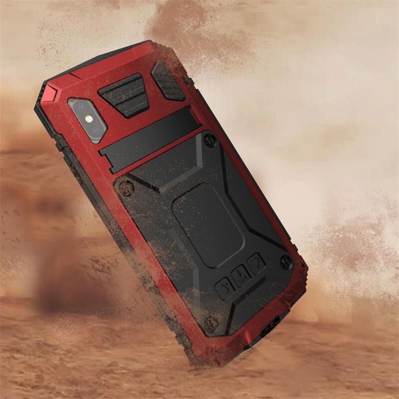 Θήκη προστασίας για iPhone XS Max ανθεκτική σε κρούσεις, αδιάβροχη, αδιάβροχη από σκόνη, μεταλλική + σιλικόνης με βάση στήριξης (Κόκκινο)