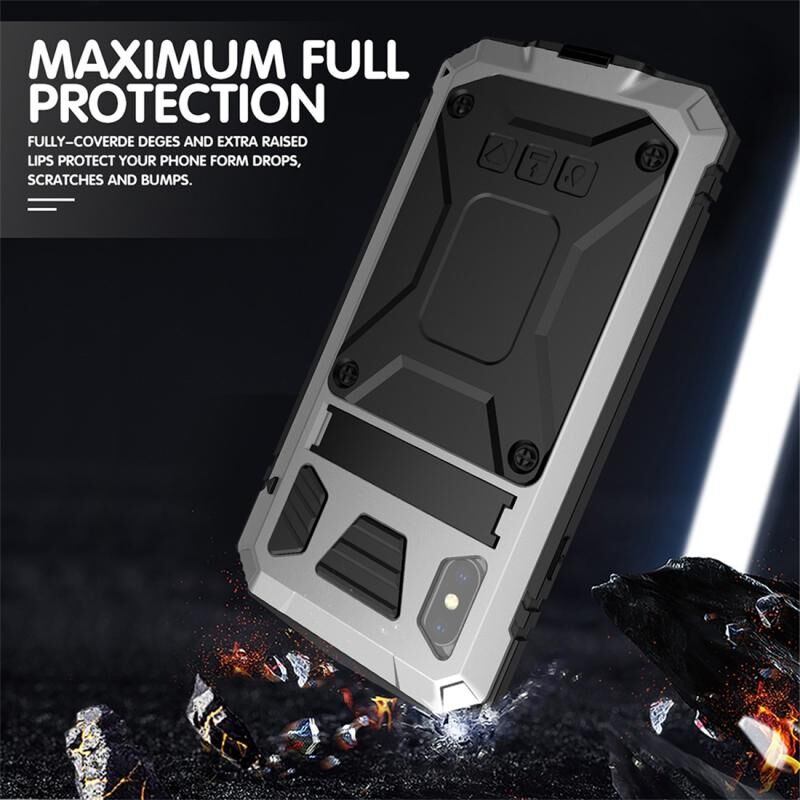 Θήκη προστασίας για iPhone XS Max ανθεκτική σε κρούσεις, αδιάβροχη, αδιάβροχη από σκόνη, μεταλλική + σιλικόνης με βάση στήριξης (Κίτρινο)