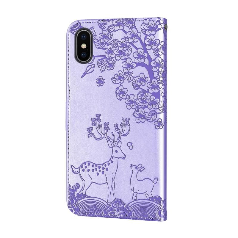 Θήκη για iPhone XS Max με ανάγλυφο σχέδιο ελαφιού Sika, οριζόντια, από δερματίνη PU με βάση & θήκη για κάρτες & πορτοφόλι & κορνίζα φωτογραφίας (Κόκκινη)