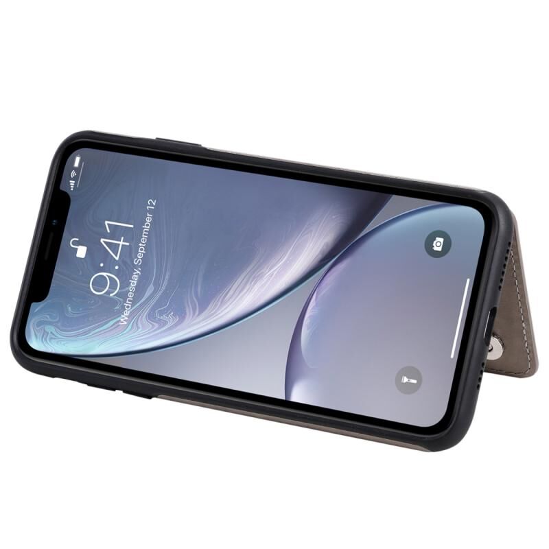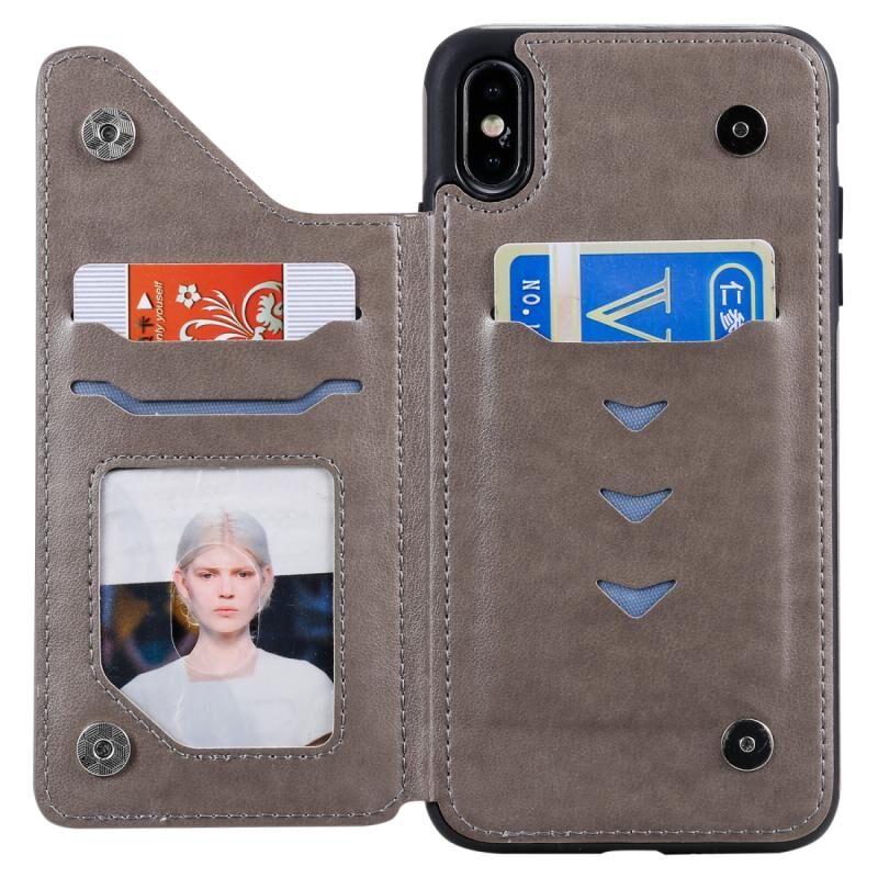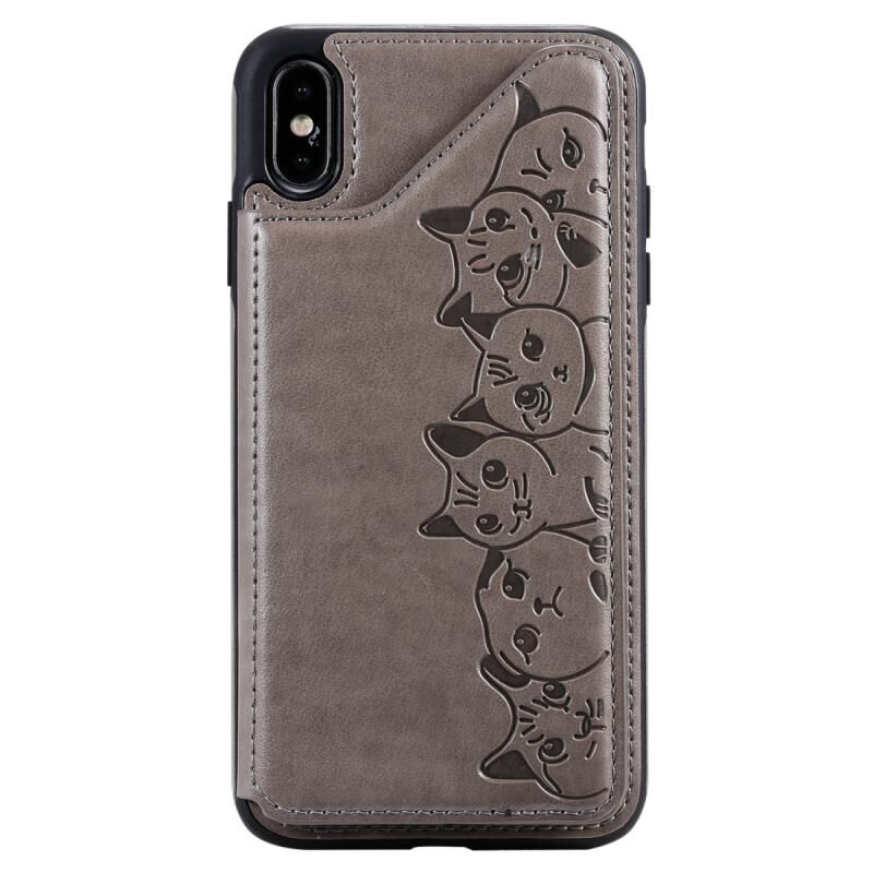 For iPhone XS Max Six Cats Embossing Pattern Protective Case with Holder & Card Slots & Photo Frame(Grey)