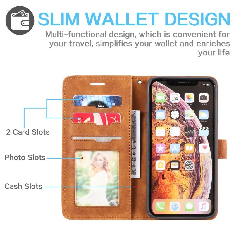 Θήκη τηλεφώνου δέρμα τύπου flip οριζόντια με αίσθηση δέρματος, αντι-κλοπής για iPhone XS Max (Καφέ)