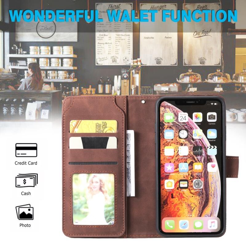 Θήκη για iPhone XS Max με αίσθηση δέρματος, επαγγελματική, οριζόντια, από PU δέρμα με βάση & πολλαπλές υποδοχές καρτών & πορτοφόλι & λουρί & κορνίζα φωτογραφιών (Καφέ)