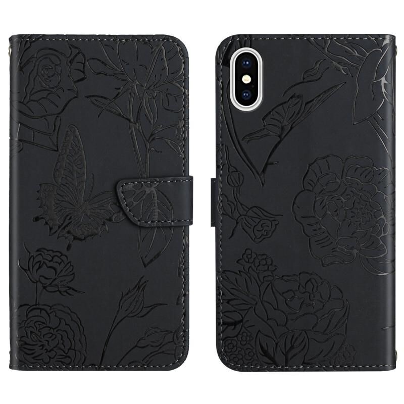 Θήκη τηλεφώνου από δέρμα με ανάγλυφο σχέδιο πεταλούδας και παιωνίας για iPhone XS Max (Κόκκινο)