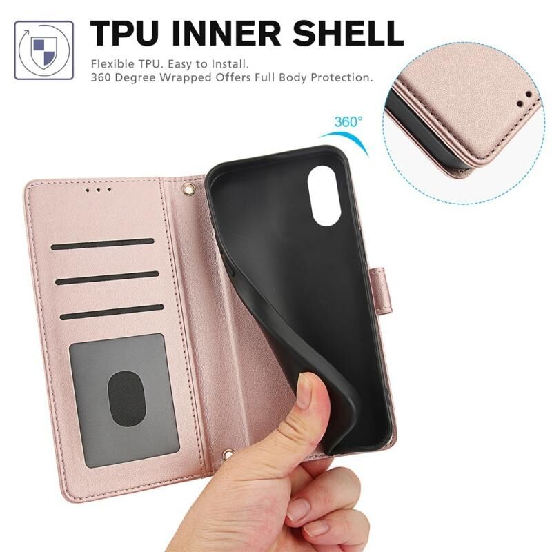 Θήκη τηλεφώνου από δέρμα για iPhone XS Max με αίσθηση δέρματος, καθαρό χρώμα, θήκες καρτών και διπλό κορδόνι (Λευκό)
