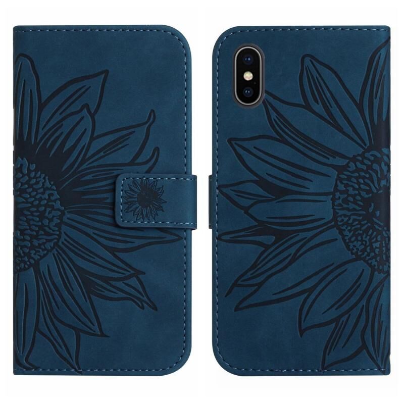 Θήκη τηλεφώνου από δέρμα με σχέδιο ηλιοτρόπιου και αίσθηση δέρματος για iPhone XS Max, με λουρί (Κόκκινο Ρόδι)