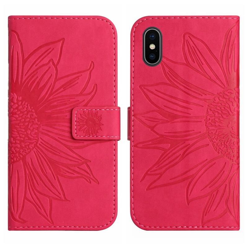 Θήκη τηλεφώνου από δέρμα με σχέδιο ηλιοτρόπιου και αίσθηση δέρματος για iPhone XS Max, με λουρί (Κόκκινο Ρόδι)