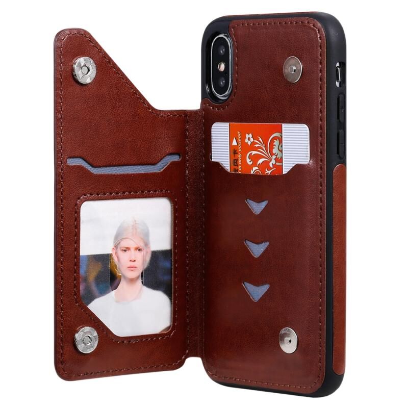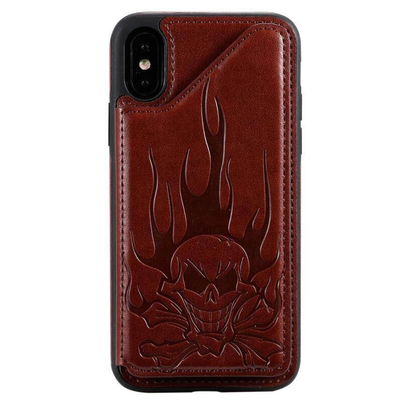 For iPhone XS Max Skull Head Embossing Pattern Shockproof Protective Case with Holder & Card Slots & Wallet(Brown)