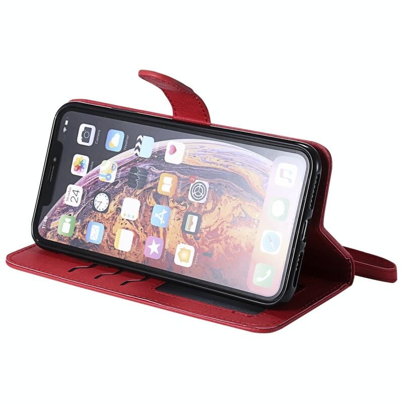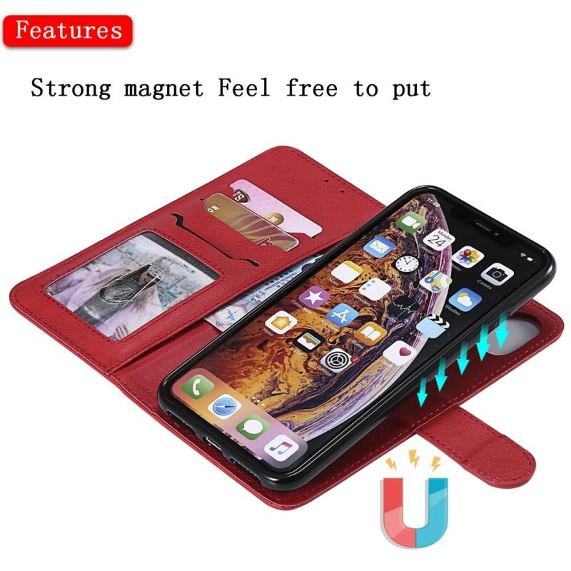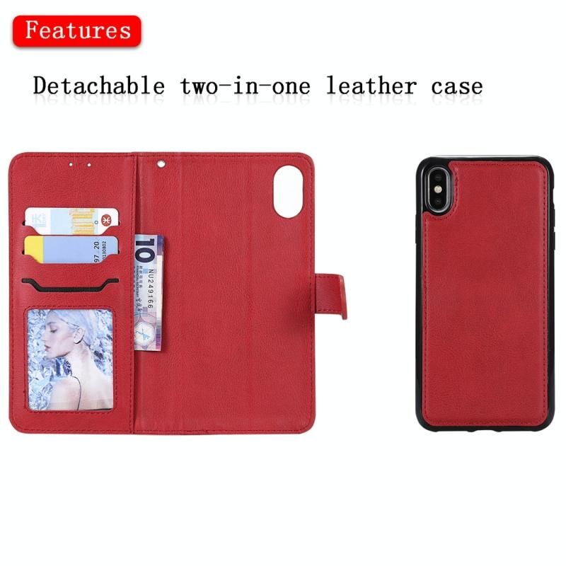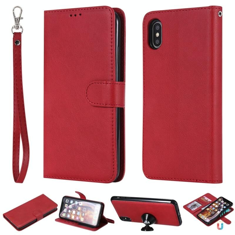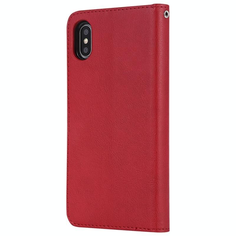 For iPhone XS Max Solid Color Horizontal Flip Protective Case with Holder & Card Slots & Wallet & Photo Frame & Lanyard(Red)