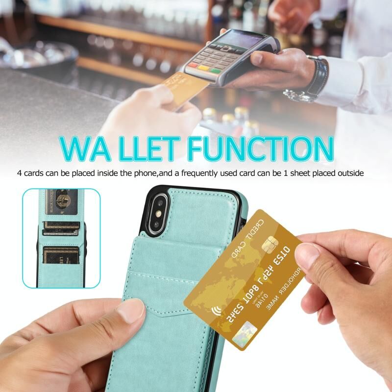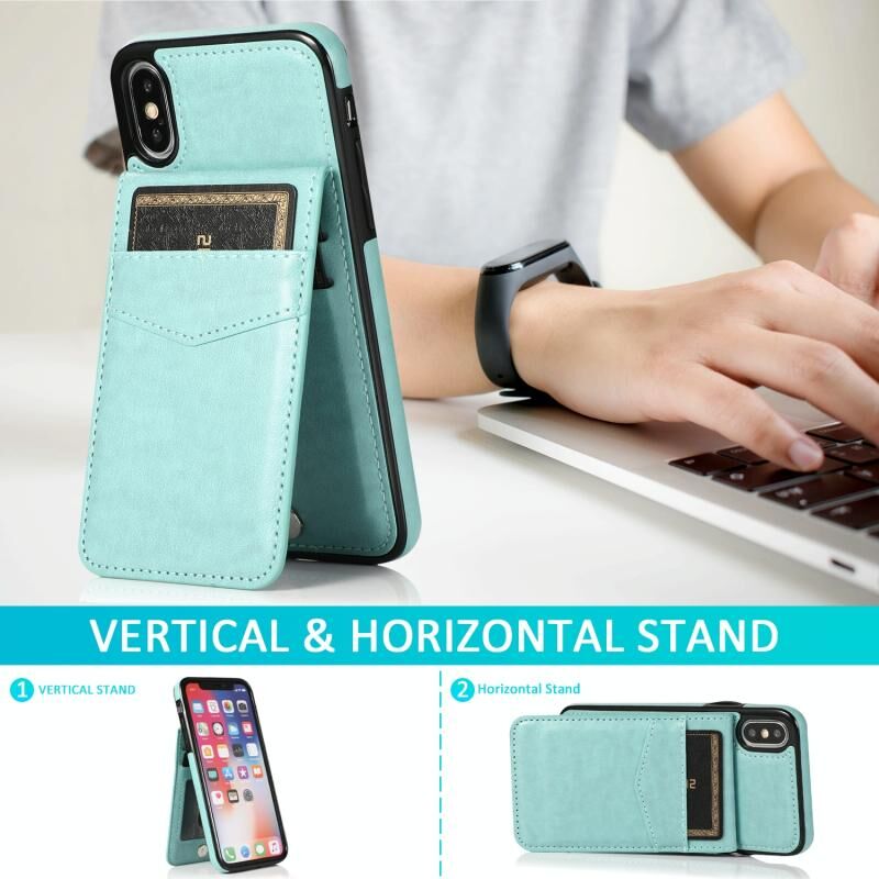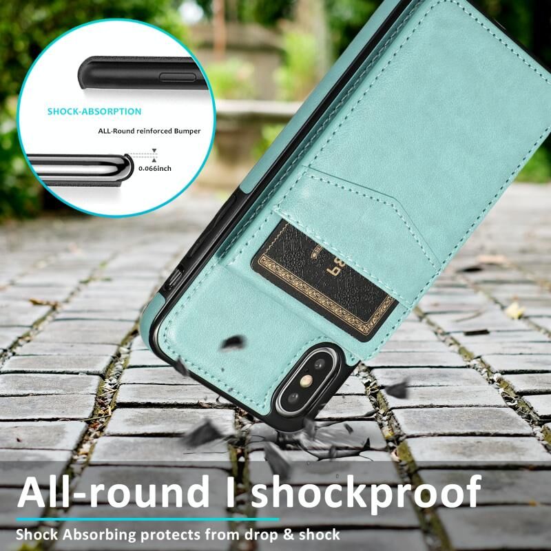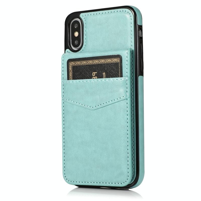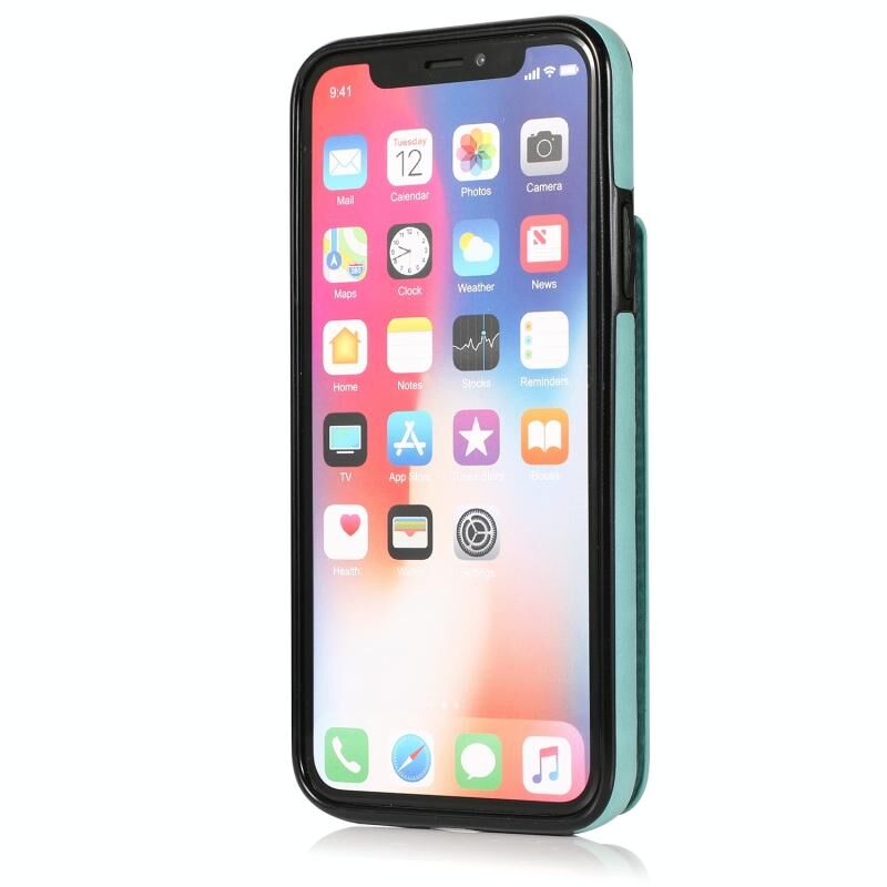 For iPhone XS Max Solid Color PC + TPU Protective Case with Holder & Card Slots(Green)
