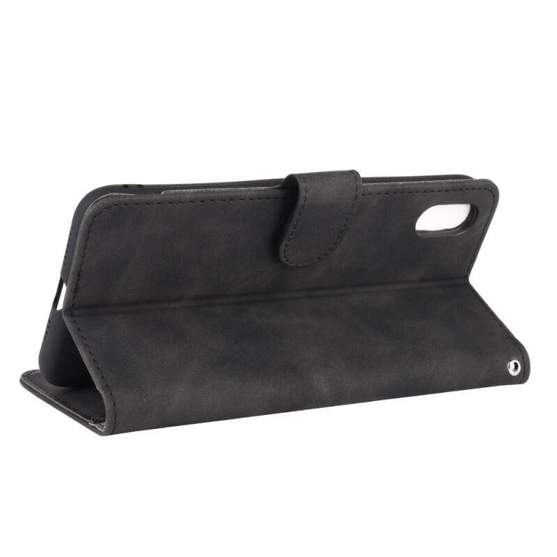Θήκη για iPhone XS Max με αίσθηση συμπαγούς χρώματος, μαγνητικό κούμπωμα, οριζόντια αναδίπλωση, υφή μοσχαρίσιου δέρματος, από PU δέρμα με βάση για κάρτες & θήκη πορτοφολιού (Μαύρο)