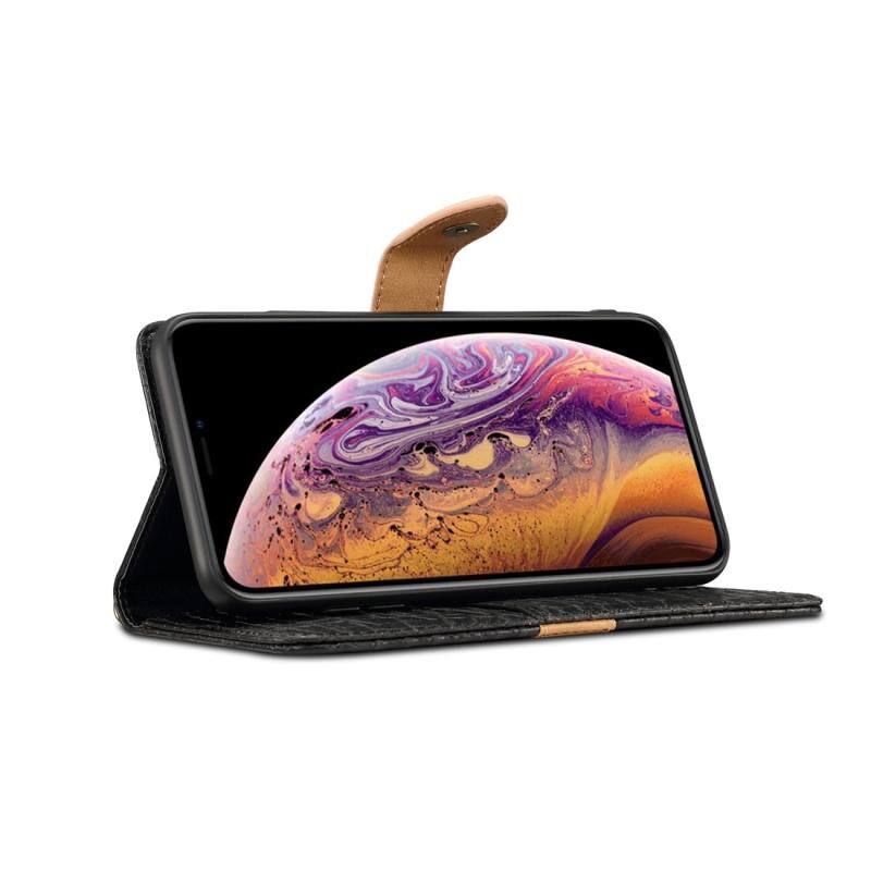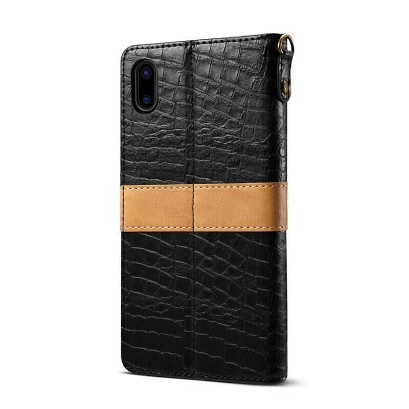 Θήκη για iPhone XS Max, Δερμάτινη οριζόντια θήκη με αναδιπλούμενο σχέδιο, υφή κροκόδειλου σε συνδυασμό χρωμάτων, με πορτοφόλι, βάση & υποδοχές καρτών & κορδόνι (Μαύρο)